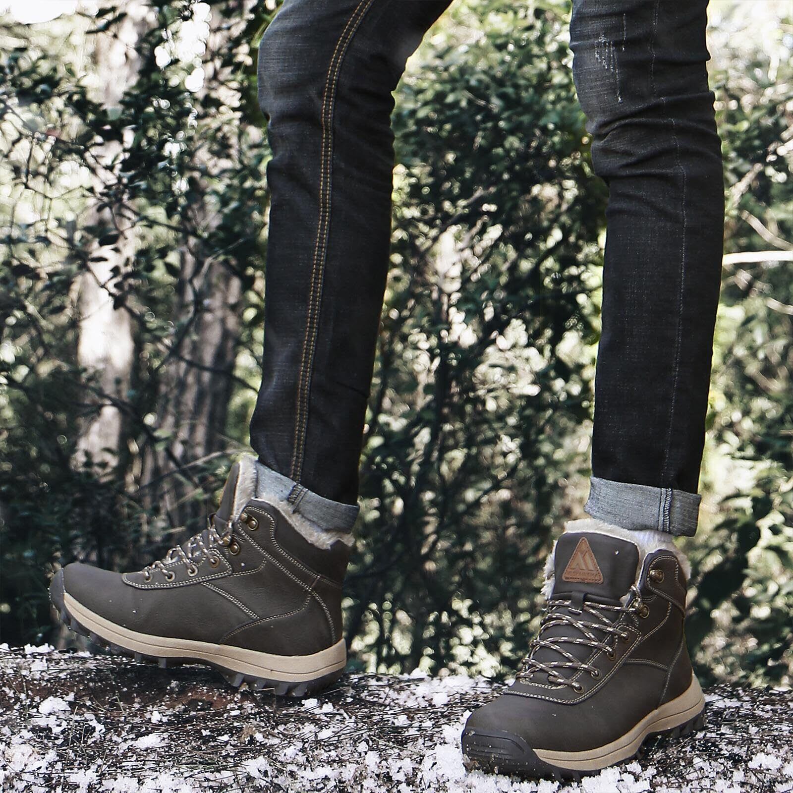 アッパーは上質なPUレザーより出来ており、風や寒さに負けず、これからの寒いシーズンに向けています。また、耐水性もバッチリで、雨水や雪などが滲みにくく、メンテナンスも簡単に行えます。更に、丁寧に縫製され、丈夫で耐気性に優れ、長持ちできます。裏には厚めなボアが貼られており、もこもこで柔らかく、足全体を暖かく包み込み、保温効果が際立っています。また、足裏に当たるところも起毛素材で作られ、裸足で履くと、ネコを足で撫でるように快適な履き心地を楽しめます。ハイカットなデザインを取り入れ、さりげなく個性を引き上げながら、足首がすっぽり覆われ、防寒性や防風性を一層高めます。渋い色合いとマットな質感にレースアップ仕様を加え、メンズの紳士さとカッコよさを演出します。アウトソールはTPR素材を採用し、柔軟性や屈曲性を持ち、歩きやすいです。また、滑り止め加工を施し、雪や雨の日はもちろん、滑りやすい圧雪路でも心強く歩けます。更に、泥だらけの地面や険しい山道も対応できます。カジュアルなスタイルで、様々なコーディに相性よく馴染みます。晩秋から来年の早春にかけてロングシーズンで履いて頂けます。通勤通学、犬の散歩など普段使いから、釣り、バイク、キャンプ、雪遊びなどのアウトドア活動まで幅広く活躍しています。