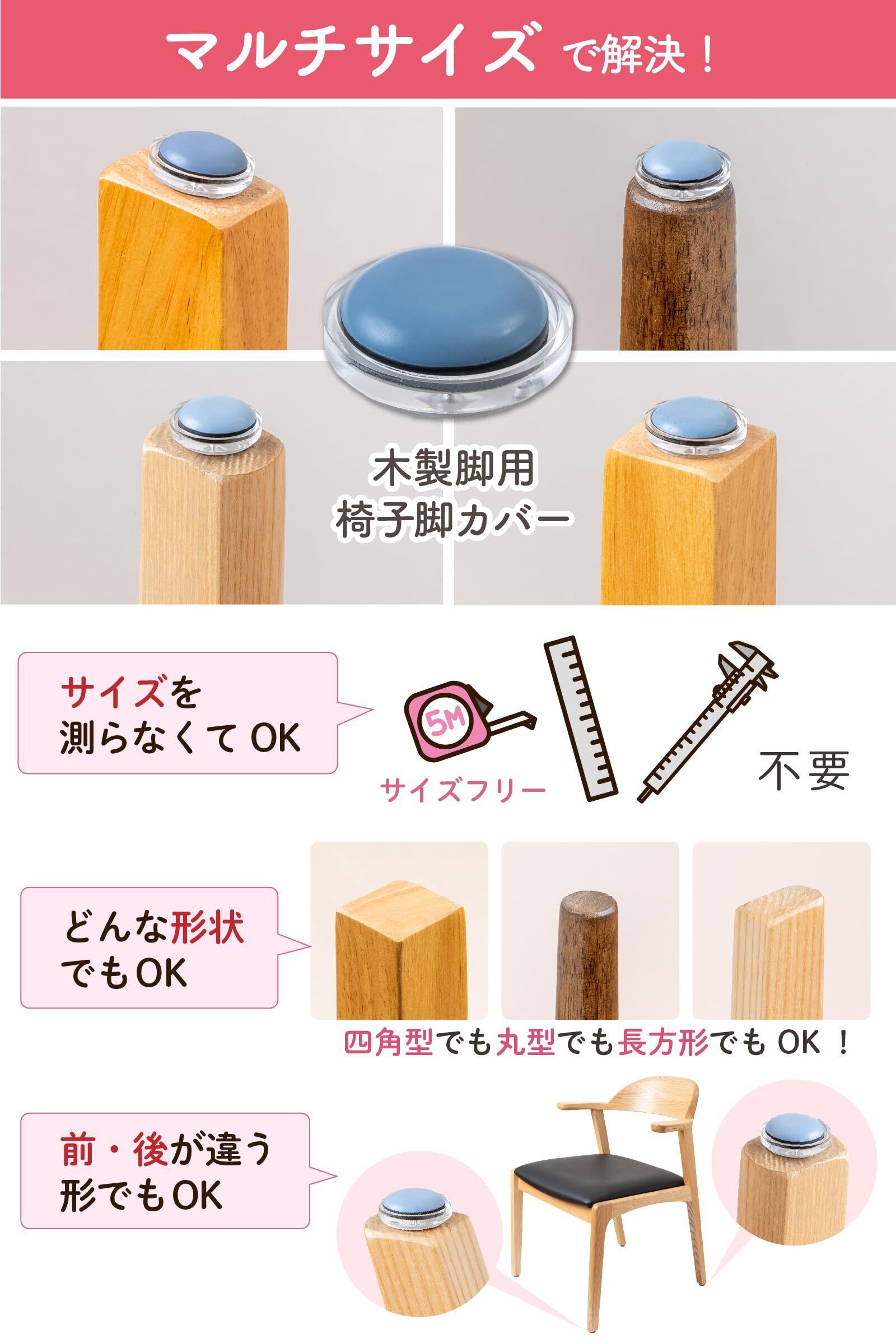 【2025最新】椅子脚カバー カルガルー 椅子の足カバー 椅子脚キャップ 椅子の脚 カバー 家具スライダー 丸形 長方形 正方形 滑りやすく 取れない フッ素 カンガルー マルチサイズ フリーサイズ 日本製 木製脚 8個入 シェリー Shelly