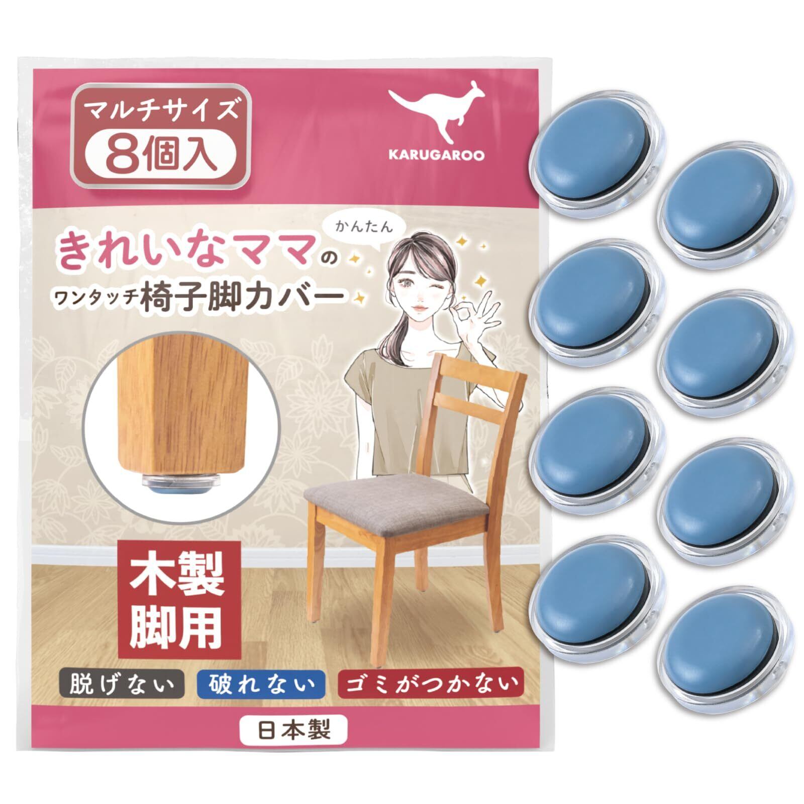 椅子脚カバー カルガルー 椅子の足カバー 椅子脚キャップ 椅子の脚 カバー 家具スライダー 丸形 長方形 正方形 滑りやすく 取れない フッ素 カンガルー マルチサイズ フリーサイズ 日本製 木製脚 8個入 シェリー Shelly