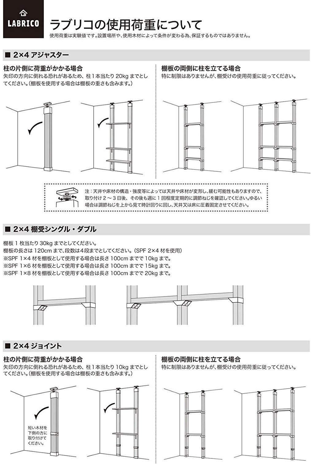 【セット内容】アジャスター 1セット、取扱説明書【使用荷重】20kg (柱一本当たり)【カラー】オフホワイト