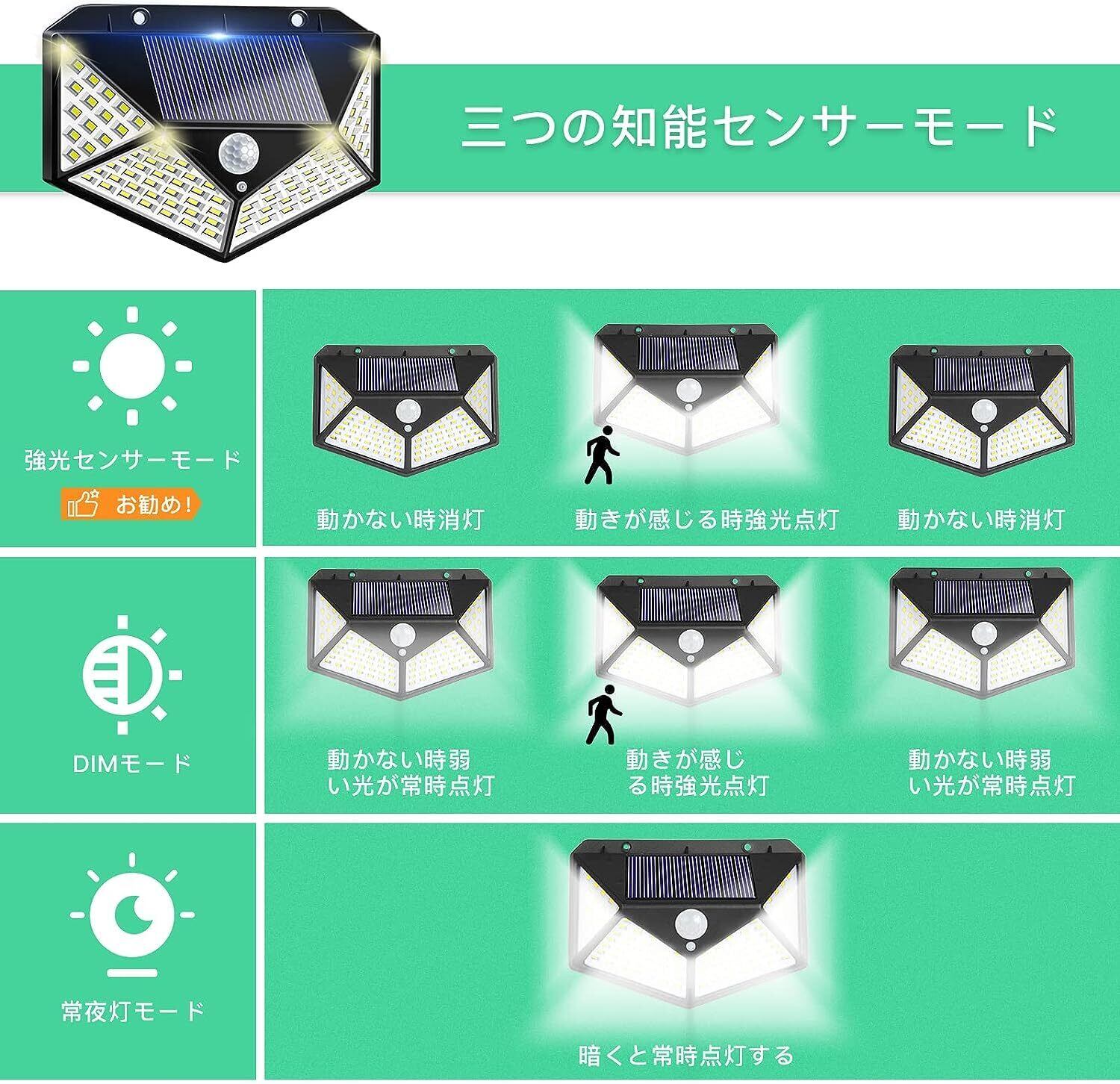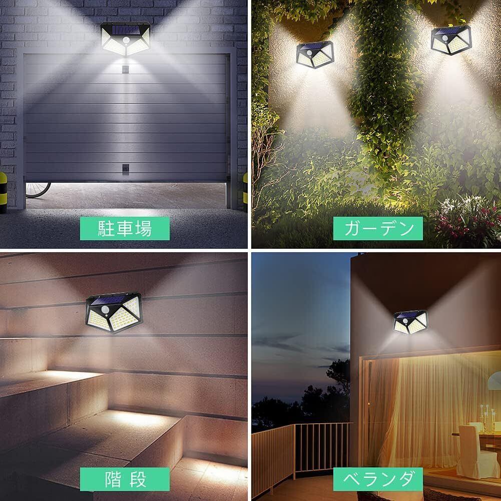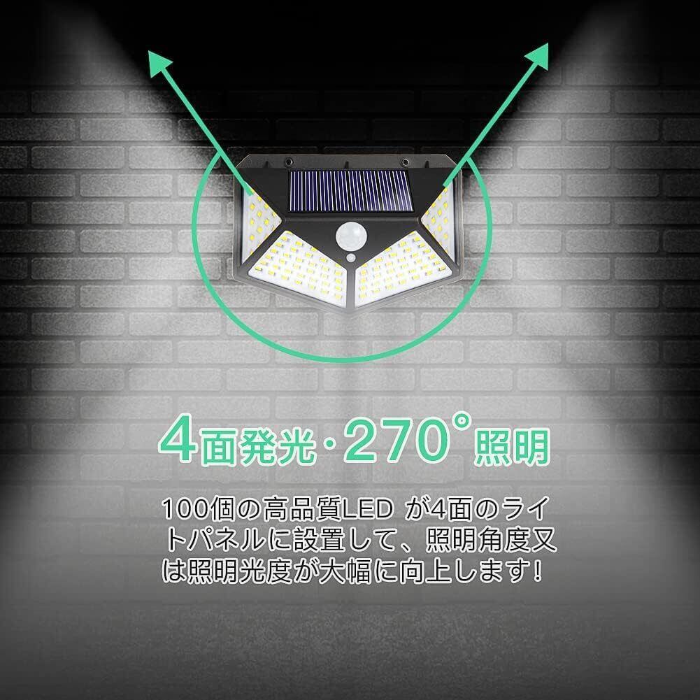【100LED・4面発光・4個セット】のソーラーセンサーライトは発光面が4個まで増やして、照射範囲が300°以上に達し、 照明の範囲もより広いになります。玄関、庭、廊下、物置、ガレージ、ガーデン、縁側、駐車場など場合で防犯や照明に最適です。