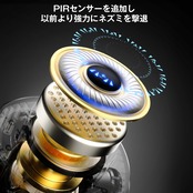 【機能紹介】青色のインジケーターが点灯し、可変周波数超音波スピーカー+固定周波数超音波スピーカーが作動します。 緑色のインジケーターが点灯し、可変周波数超音波スピーカーが作動します。 赤いインジケーターが点灯は自動モード、ネズミを検出するとデバイスがトリガーされ、可変周波数超音波スピーカー+固定周波数超音波スピーカーが同時に動作します。 LED 点滅ライト機能は手動でON/OFFでき、日中や強い光環境では自動的に消灯し、夜間や暗い場所では点灯します。