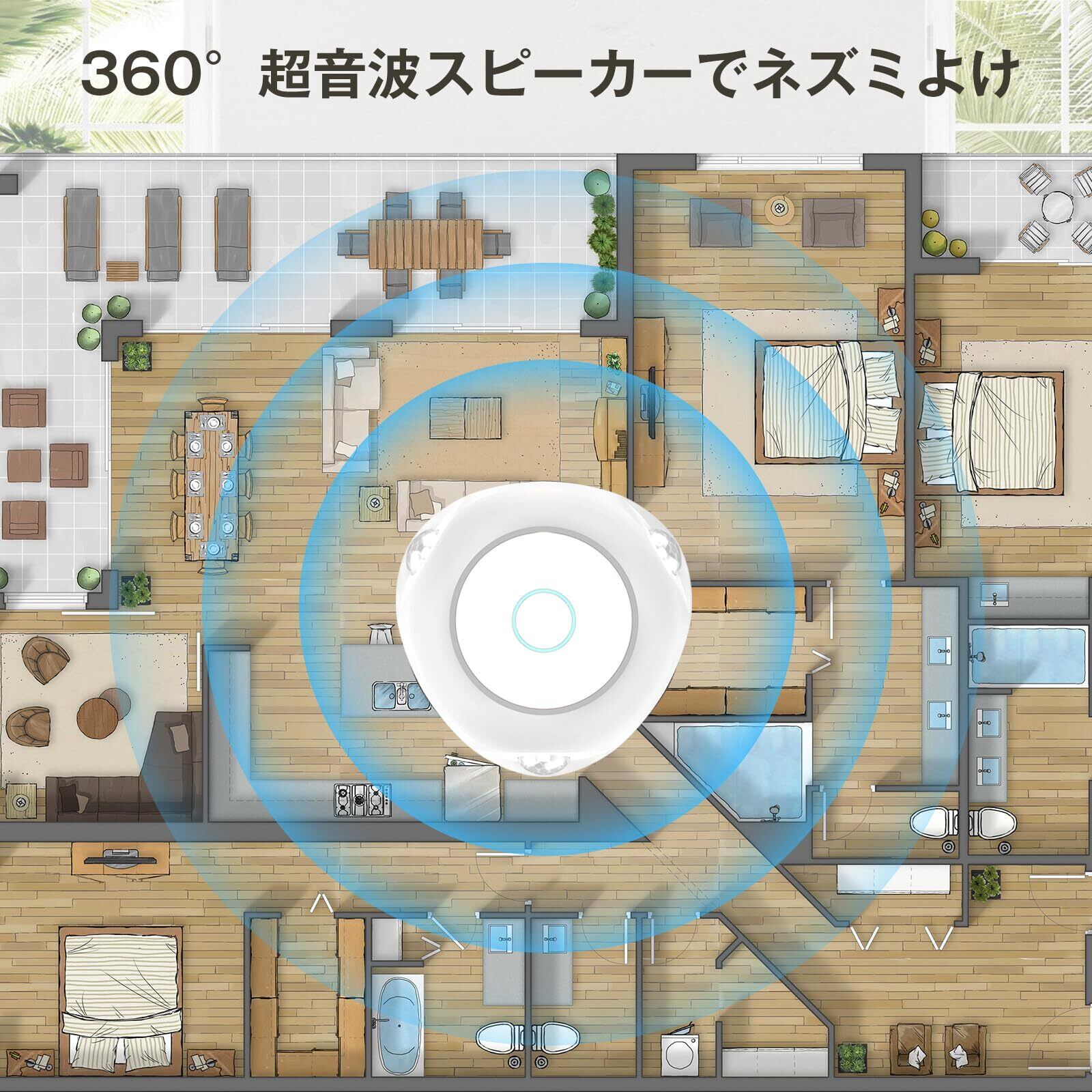 【数量限定】【日本国内販売限定】ネズミ 駆除 超音波 360度死角がない 動物撃退器 PIRセンサー ねずみよけ 屋内 強力 静音 電磁波 有効範囲350平米 LEDライト 無毒無臭 日本語取扱説明書 白