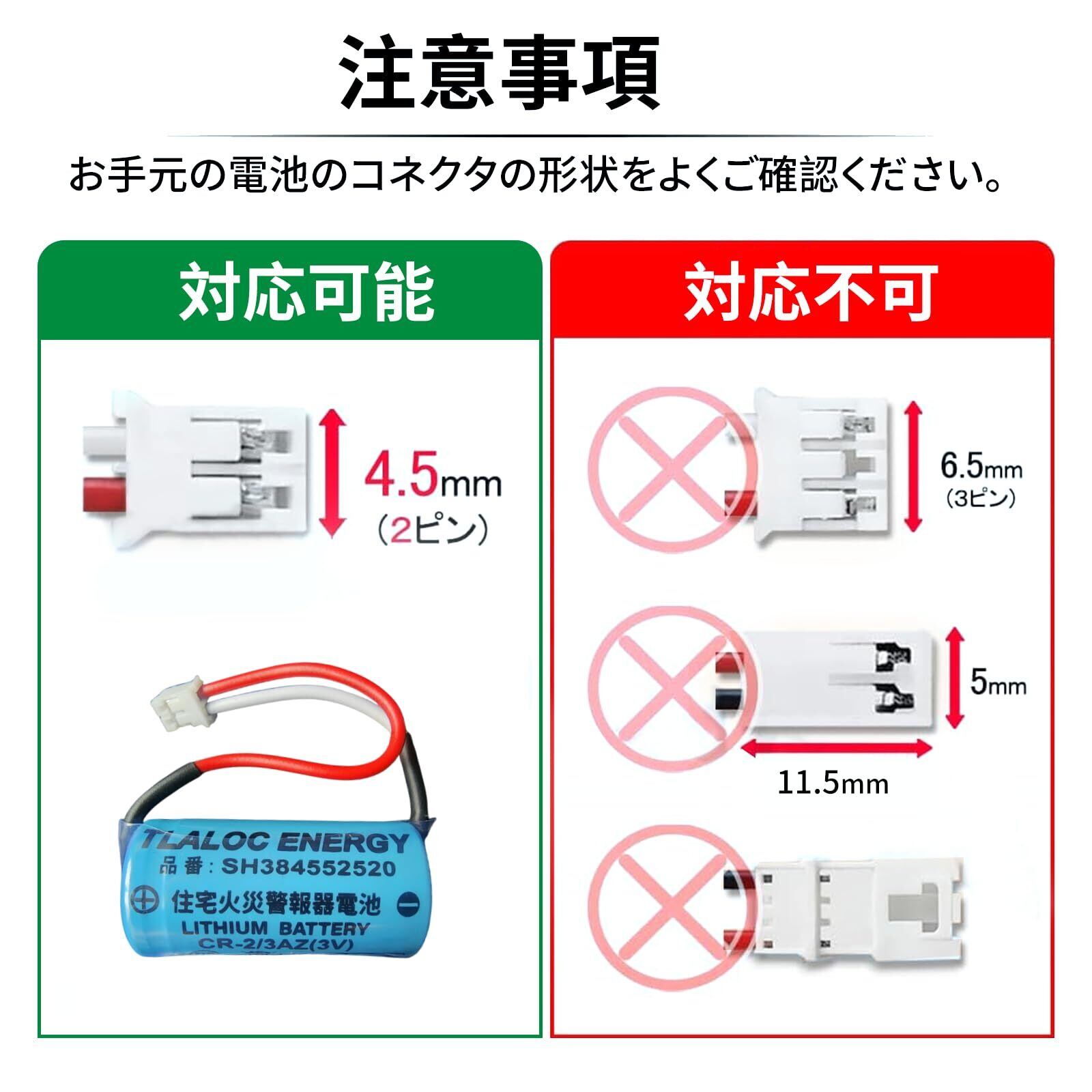 使用上のご注意 ※こちらのバッテリーは充電式ではありません。 ※本製品には同一型番のコネクタ形状違いが存在します。ご購入の際は、コネクタ形状をご確認下さい。