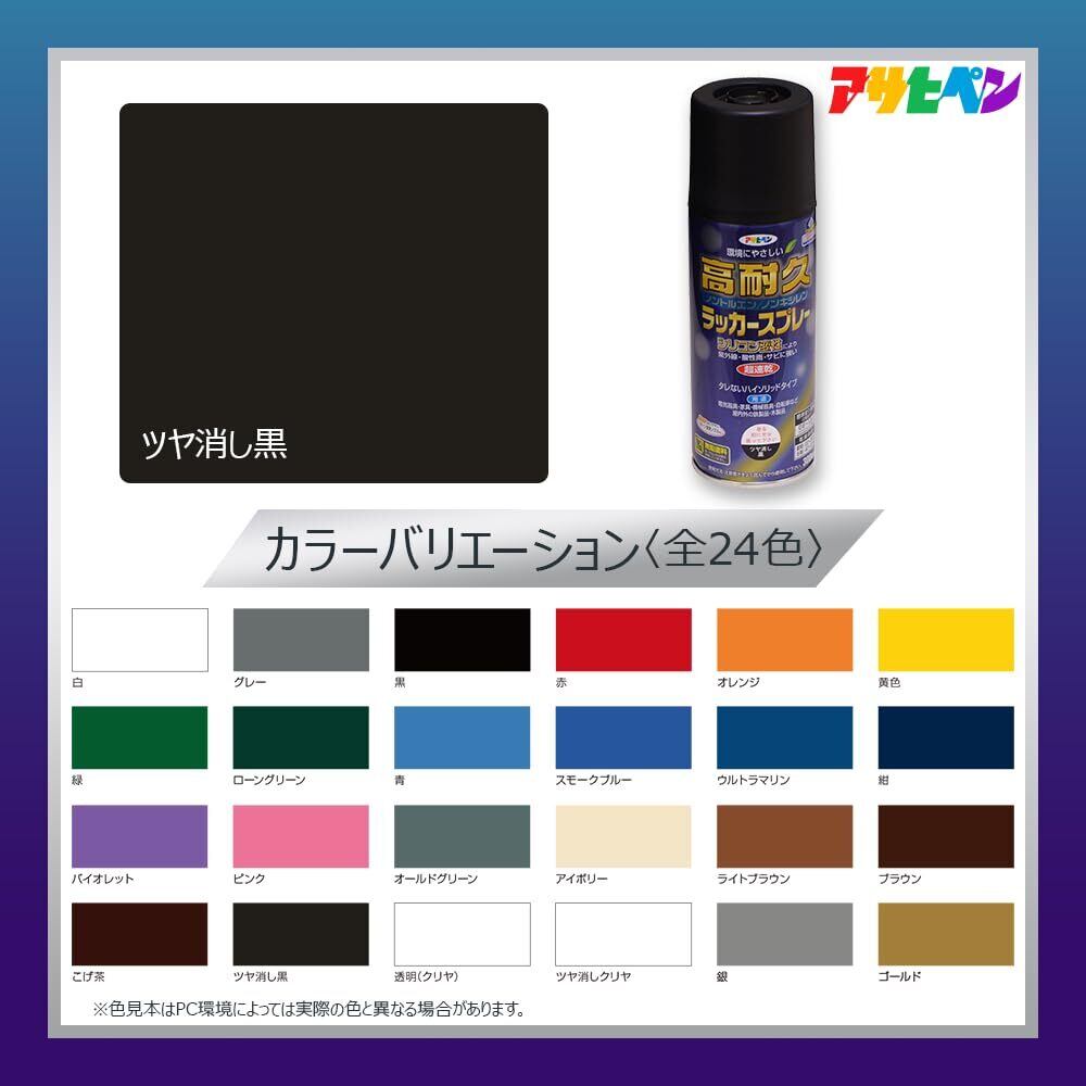 アサヒペン 塗料 ペンキ 高耐久ラッカースプレー 300ML ツヤ消し黒 ラッカー スプレー 艶消し 超速乾 ガス抜きキャップ付き 日本製