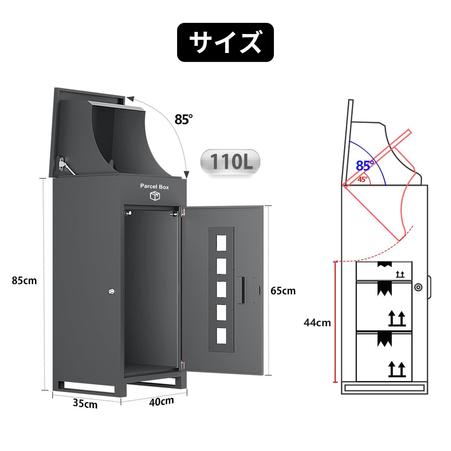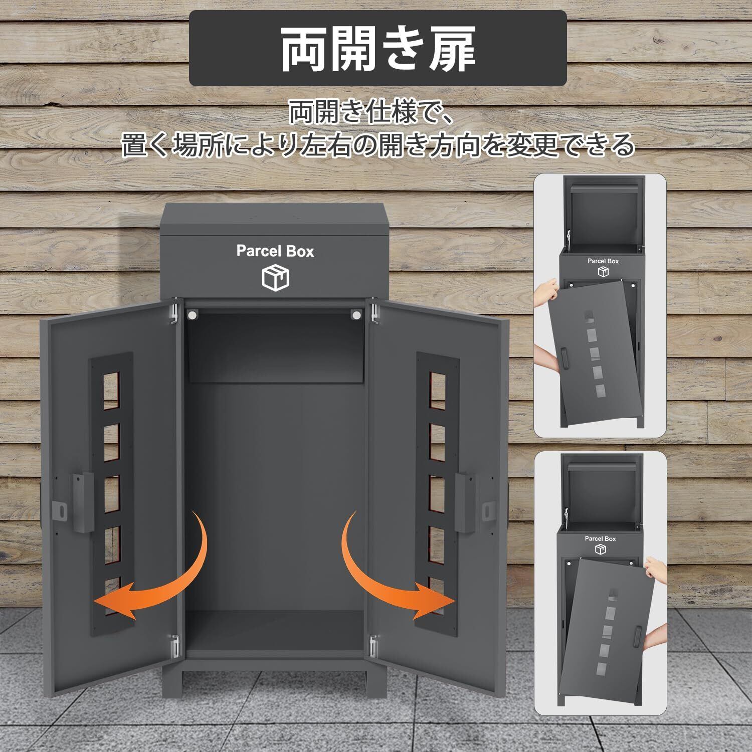 【複数投函可能/大容量】 VARNIC 宅配ボックス 組み立て不要 宅配BOX 防水 屋外 大容量 置き配 宅配便ボックス 大型 盗難防止 両開扉 戸建て用 個人宅 (グレー)