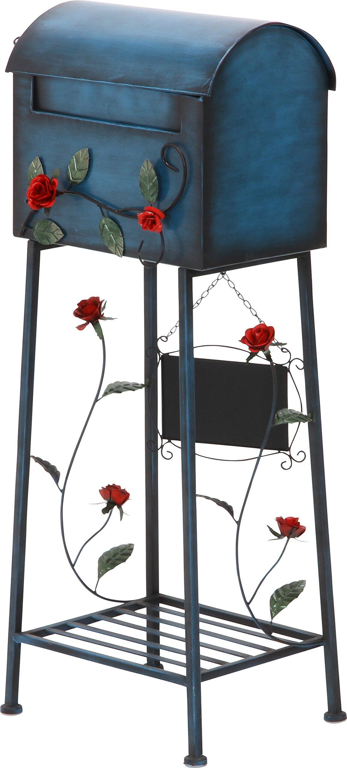 不二貿易 メールボックス 郵便受け ポスト 幅40.5×奥行33×高さ102cm ブルー 横型 スチール 棚付き 黒板付き ローズ 96760