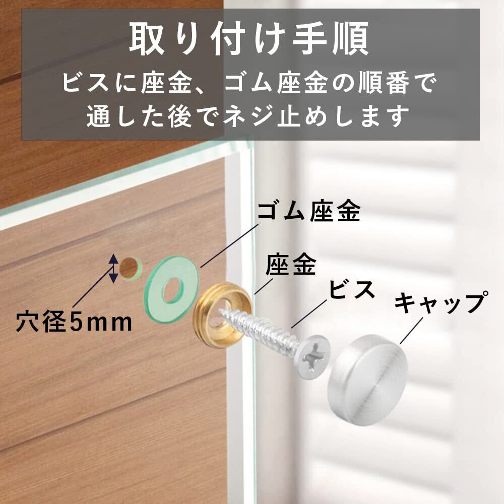 【商品詳細】商品内容:キャップ×20、座金×20、ビス×20、ゴム座金×20 サイズ:キャップサイズ:直径16mm,高さ5mm、ビズサイズ:直径3.5mm,長さ25mm、座金サイズ:外径9.5mm,穴径4.5mm、キャップ素材:ステンレス