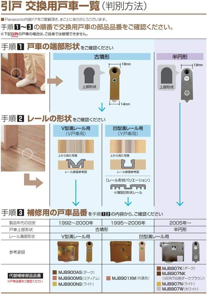 内装引戸用Y戸車 パナソニック内装引戸用 ナショナル National 互換品 ライトブラウン2個入 2005年~現行モデル MJB907N MJB907N1