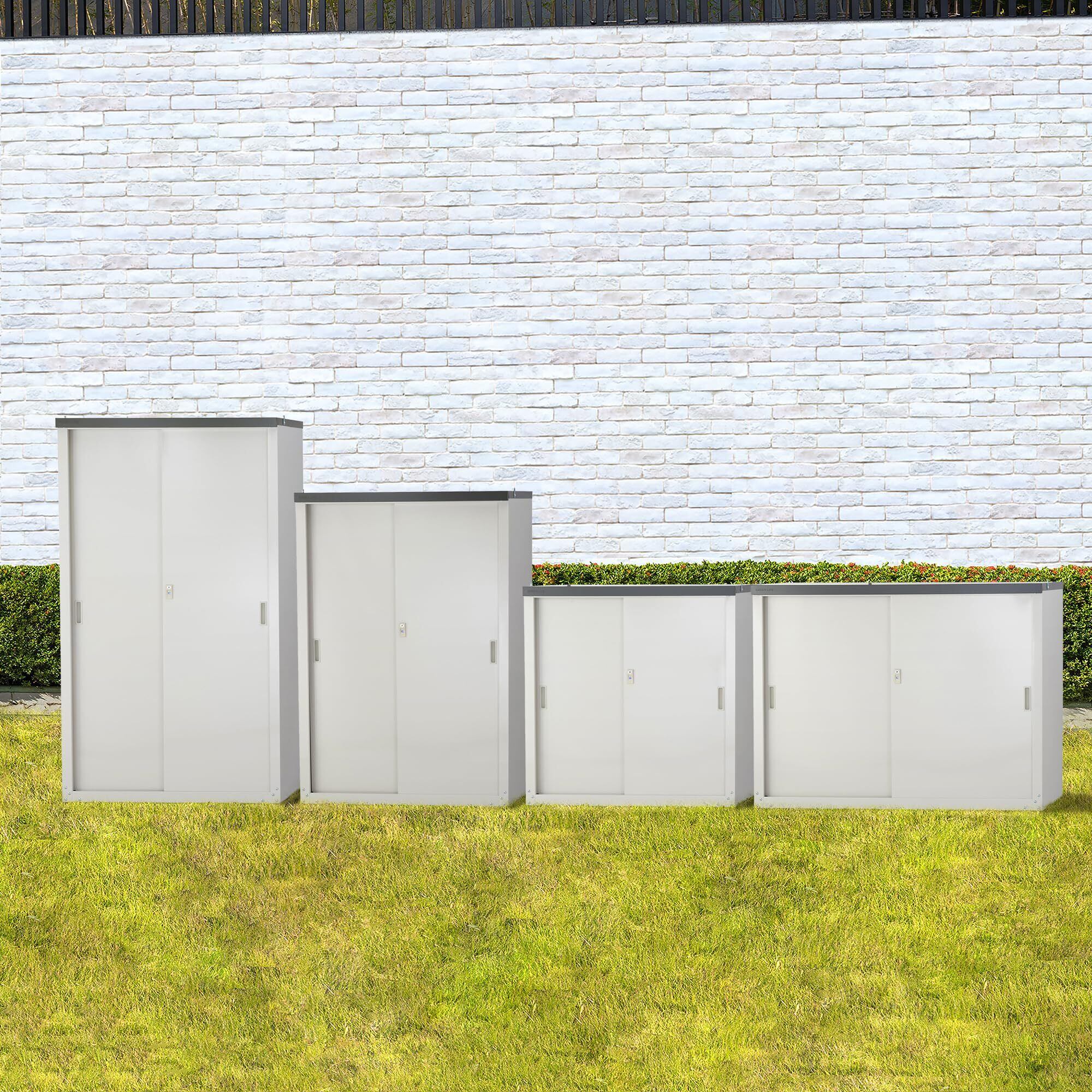 グリーンライフ(GREEN LIFE) 物置 日本製 サビに強い 屋外 小型 棚板1枚 鍵付き 棚板調整 可動棚 棚板耐荷重25kg 底板耐荷重50kg (幅89×奥行47×高さ92cm)ライトグレー 倉庫 収納庫 HS-92