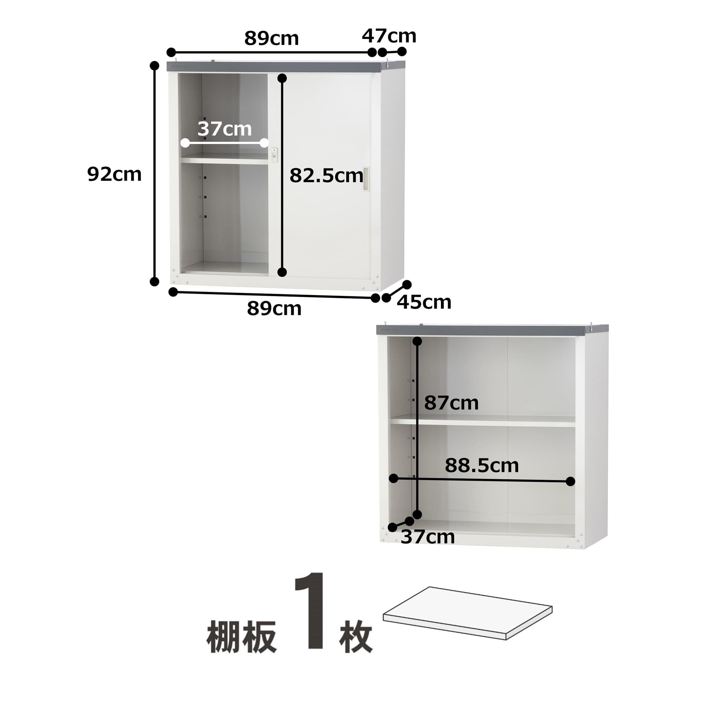 【サイズ・耐荷重】外寸:(約)幅89×奥行47(天板以外は45)×高さ92cm、内寸:(約)幅88.5×奥行37×高さ87cm、有効開口部(扉を開いた時の開口部):(約)幅37×高さ82.5cm 耐荷重棚板:25㎏、 底板:50㎏