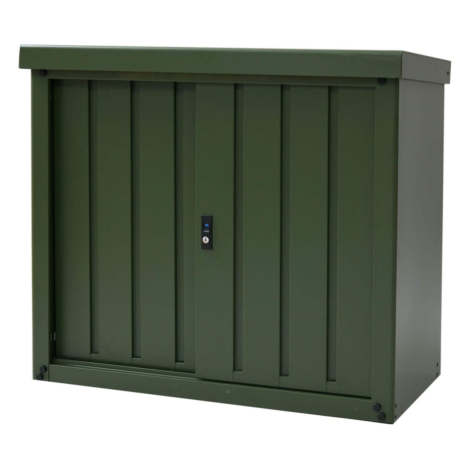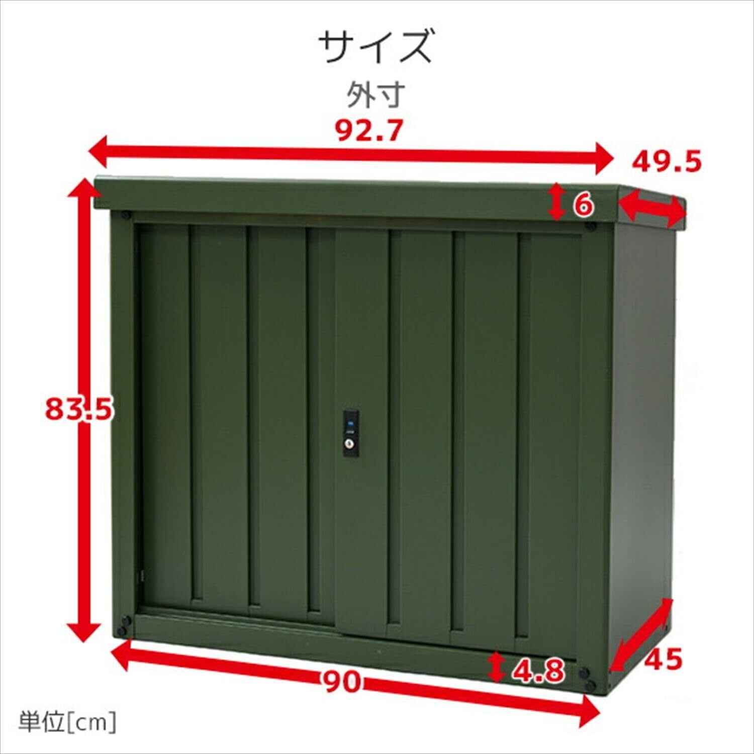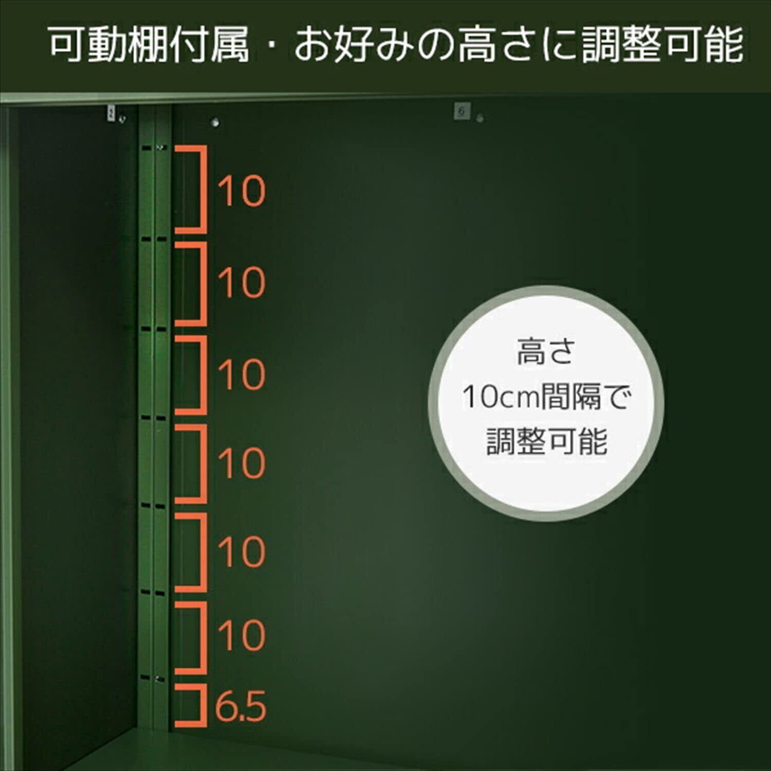 ●組立品です●組立時間:約30-40分●フロント扉に深めのスリットをデザインしたおしゃれなのスチール物置き●カラーはお庭のグリーンや爽やかな青い空にマッチするカーキを採用●ハイテンション亜鉛メッキ鋼板採用で硬度UP●衝撃に強く、サビにも強い●扉に吊り戸式を採用し、開閉がスムーズ●収納物が出し入れしやすい下部レール部フラット●安心の専用鍵付き●収納部内寸:幅89×奥行34.5×高さ74cm●可動棚1枚付き(高さ約10cmピッチ)●可動棚サイズ:幅89×奥行33.5×高さ2cm※完全防水ではないため、吹き込みなどによる雨水侵入のおそれがあります