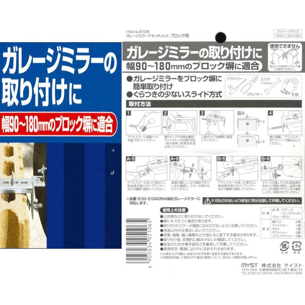 【限定セール】MYST(マイスト) ガレージミラー ブロック用取付金具(幅90~180mm) (5106)