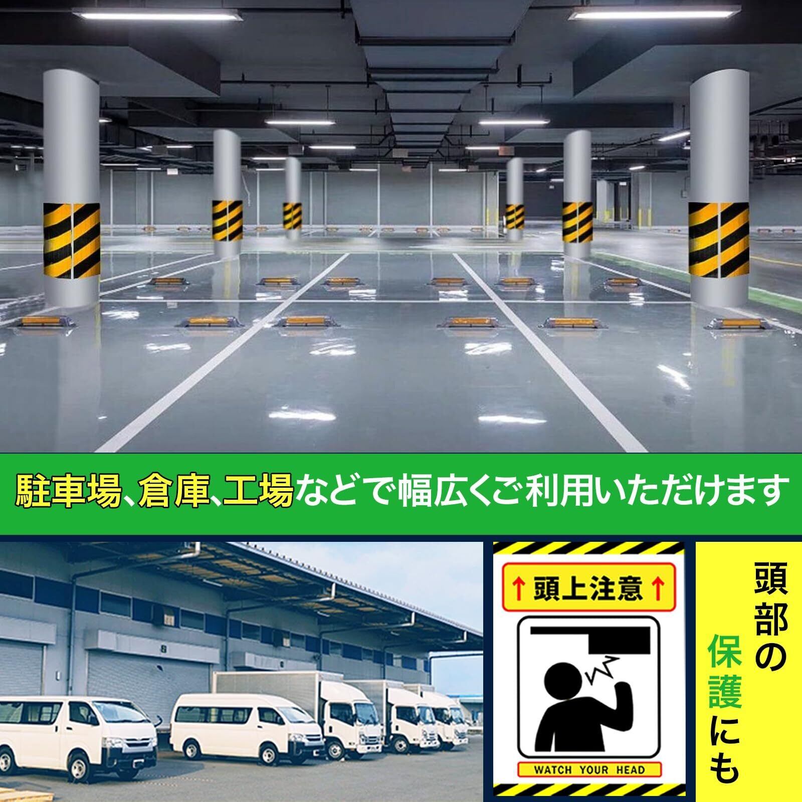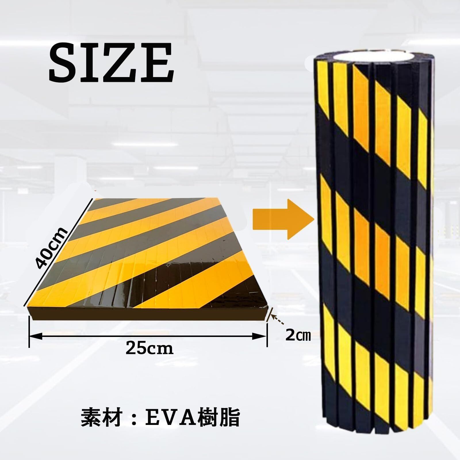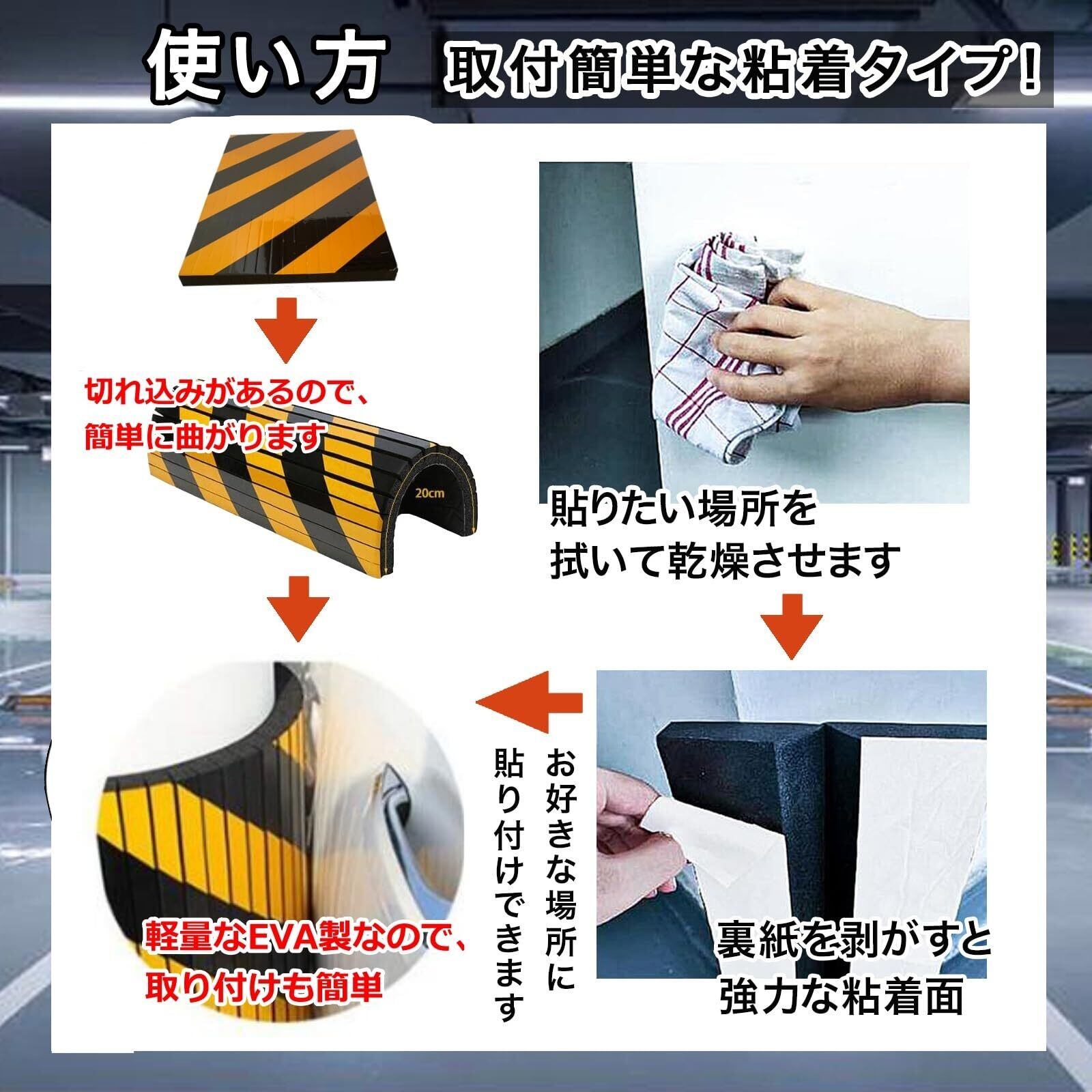 ガレージ、倉庫、駐車スペース、建物のコーナーなどに貼って、危険標示とクッション機能で車や人を保護します。