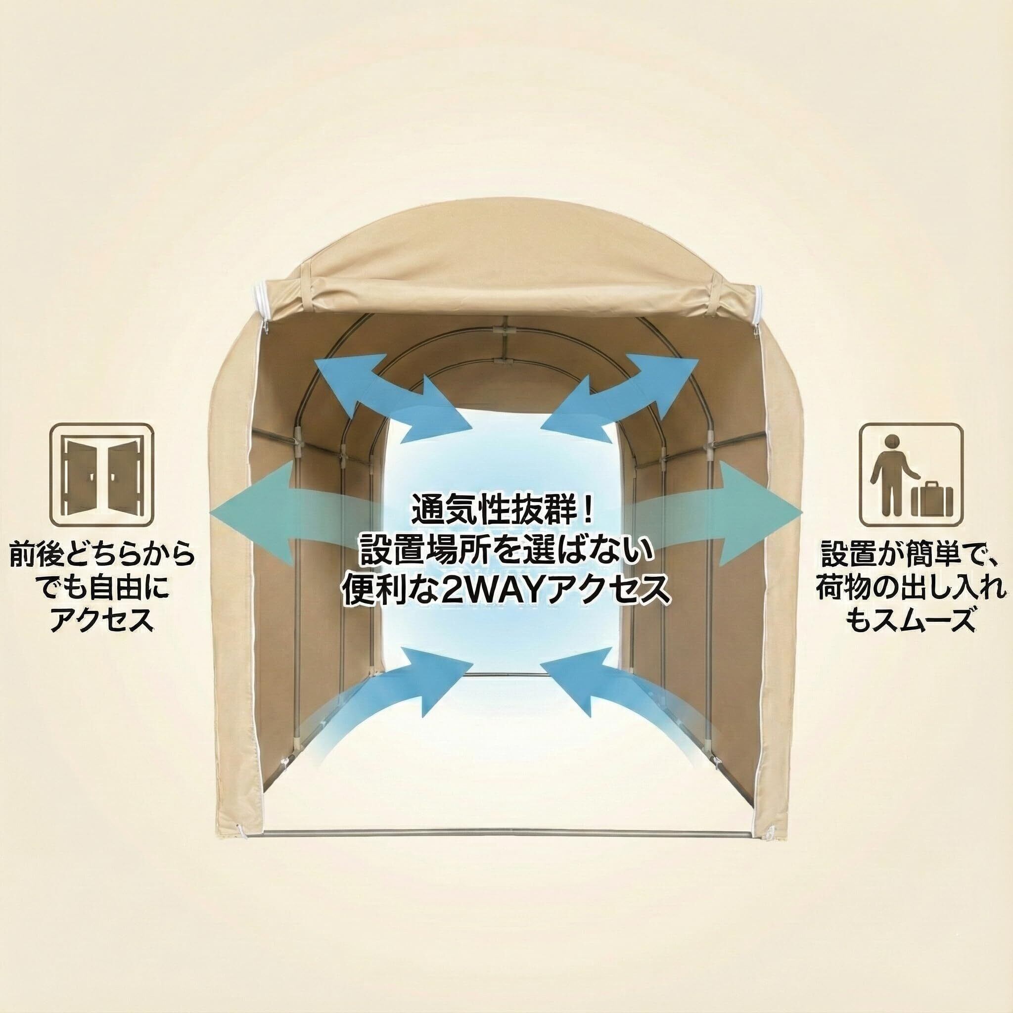 高耐久シート サイクルハウス 3台用タイプ 自転車置場 サイクルポート マルチハウス (ベージュ)