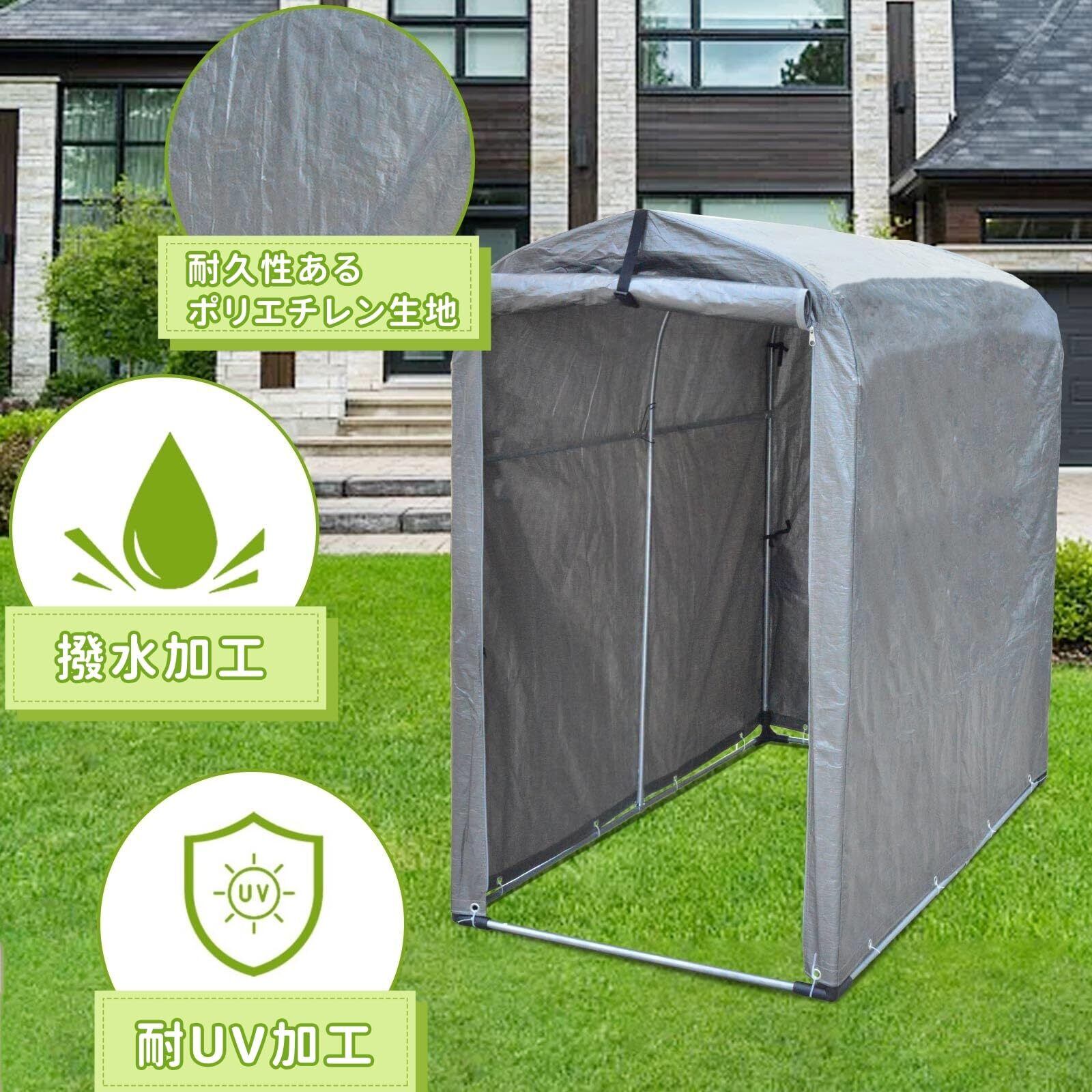 【高耐久素材】紫外線・雨・劣化に強い長期使用設計:本体カバーには、高密度で高耐久なPE素材を採用。特別な耐日光・耐紫外线加工により、夏の強い日差しによる色褪せや材質の脆化を大幅に抑制します。表面は防水だけでなく、水滴をはじく撥水加工も施されているため、雨による汚れが付着しにくく、メンテナンスも簡単。長期間屋外に設置しても性能が落ちず、愛車を確実に守るバイクガレージです。