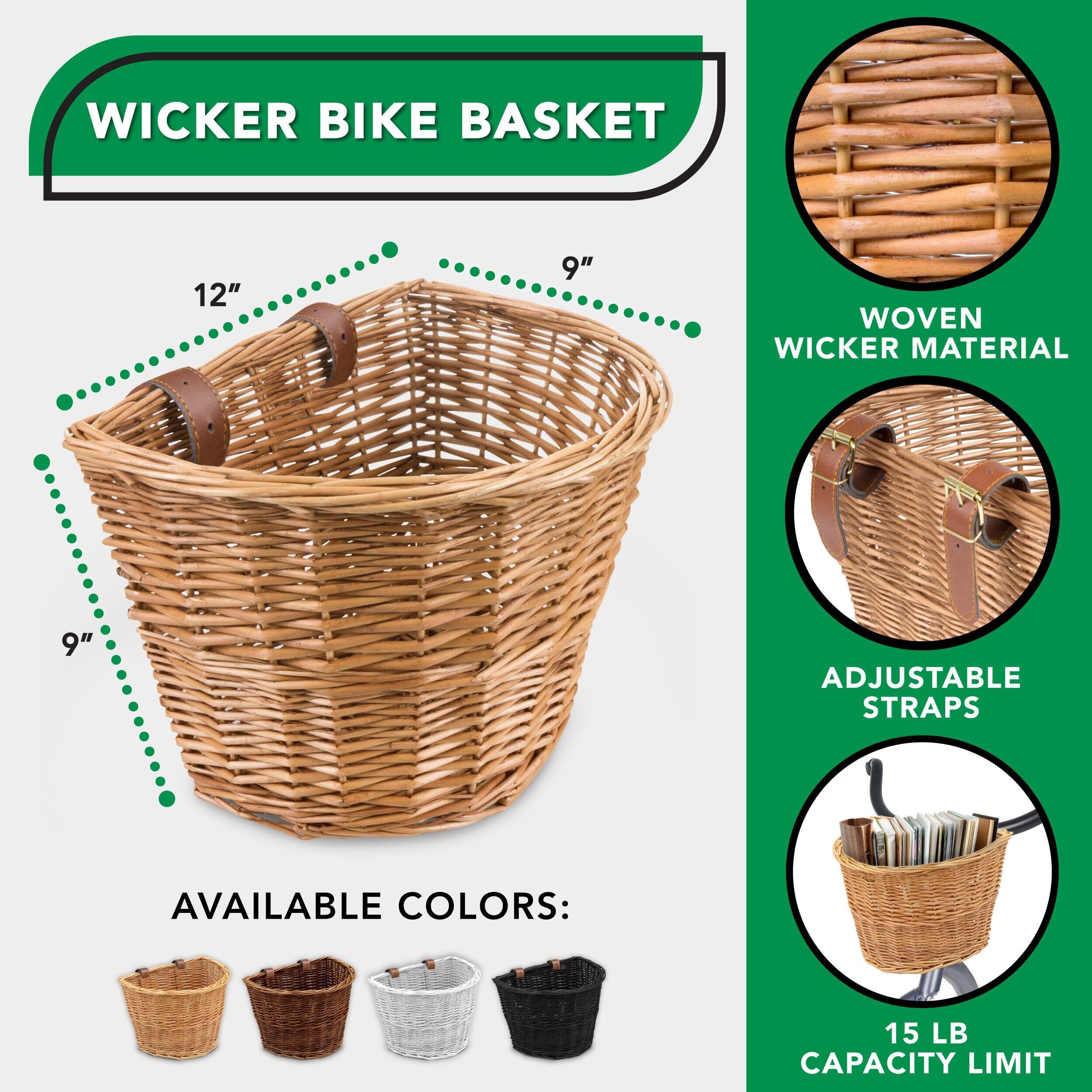 CONVENIENT & STYLISH – Choose from three different colors-black, brown and light brown. Designed for people who love biking around town or to the local farmer's market this beautiful, cane woven cruiser bike basket with style.