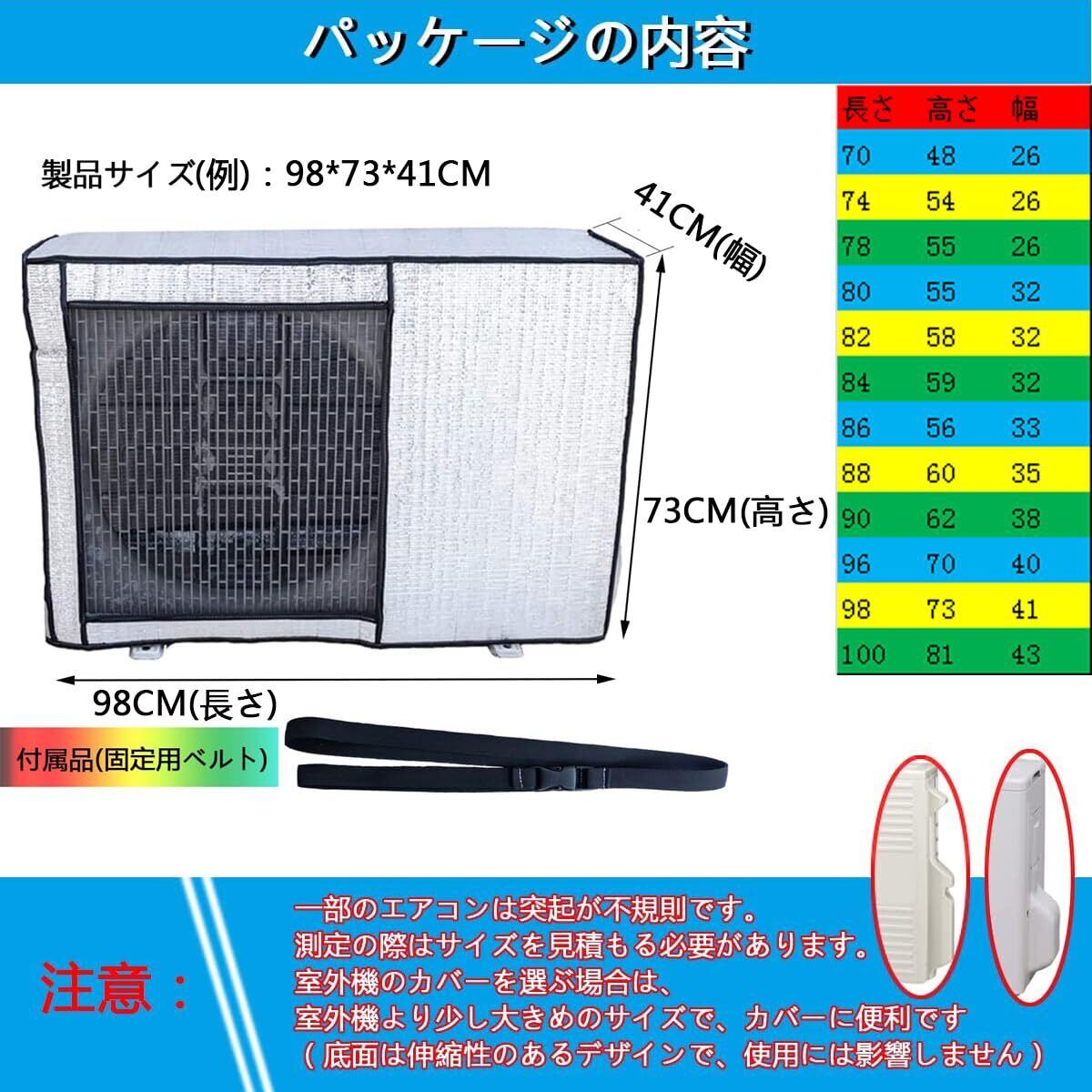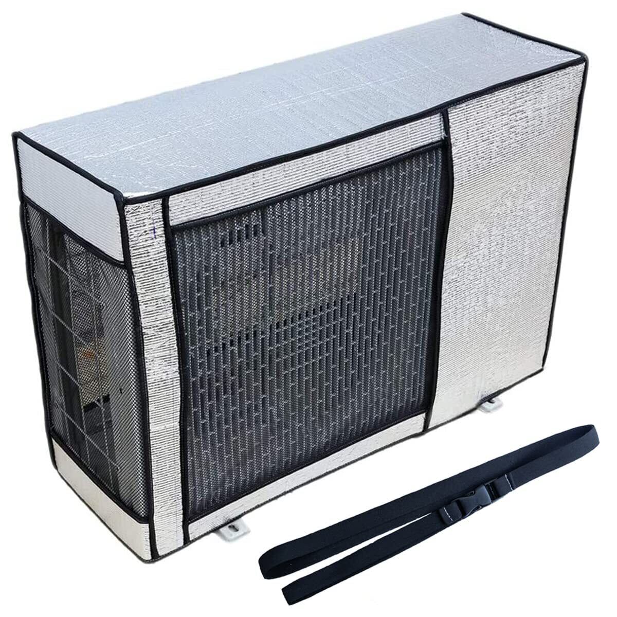 エアコン室外機カバー 固定用ベルト付き 室外機保護カバー 日・雨・雪・風・ホコリよけ 室外 機を守る 劣化防止 汚れ防止 日焼け止め アルミ箔素材 断熱 保温 防水 防塵 日よけ 取り外し不要 反射素材 効率アップ 省エネ 簡単装着 オールシーズン適用 (78*55*30)