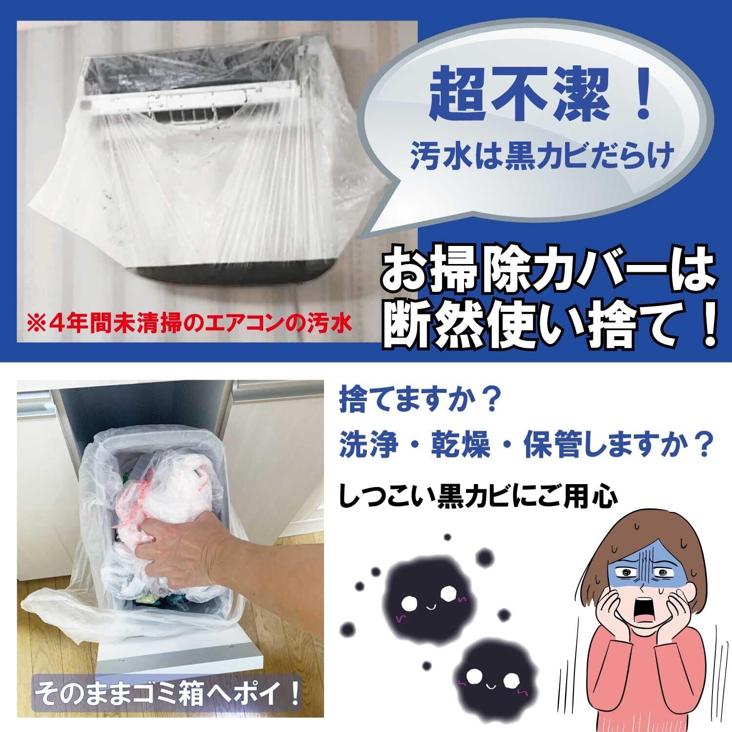 【使い捨て】エアコン洗浄後捨てるだけ。カバーの洗浄、乾燥、保管は不要!清潔が一番!