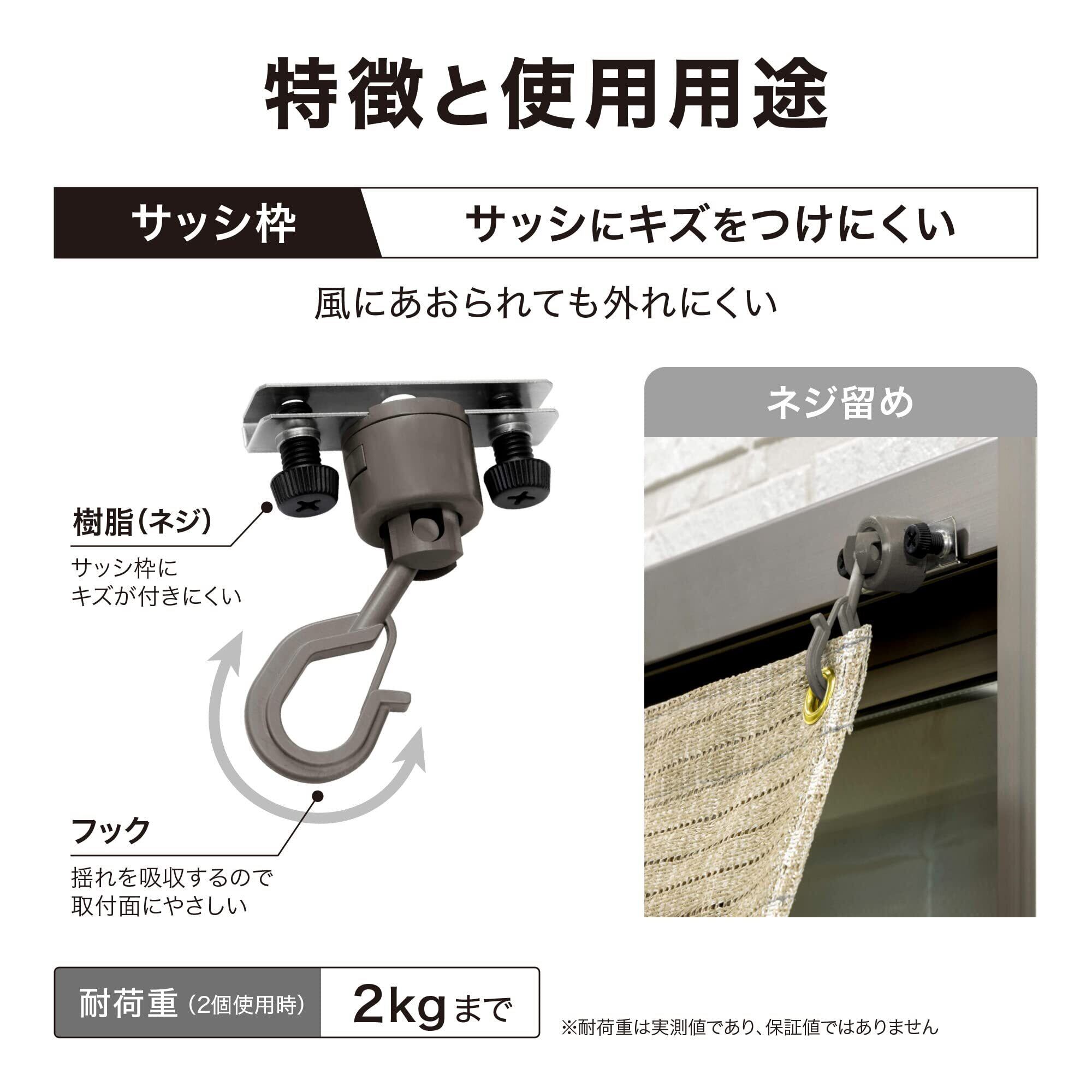 タカショー シェード取付 フック 自在型 2個組:窓サッシに挟んで角度を自在に調整できるフック