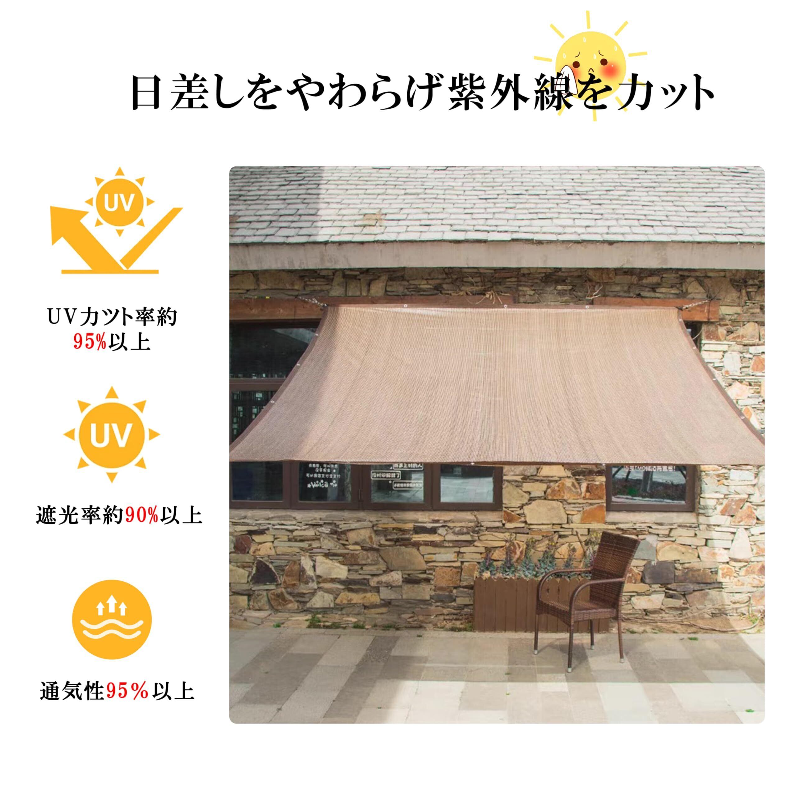 日除けシェード 2mx2m 日よけスクリーン 日除け オーニング シェード 目隠し 遮光ネット UVカット 取り付けも簡単 高密度ポリエチレン 家/廊下/庭下/屋外 バルコニーサンシェード ひよけ (コーヒー色)
