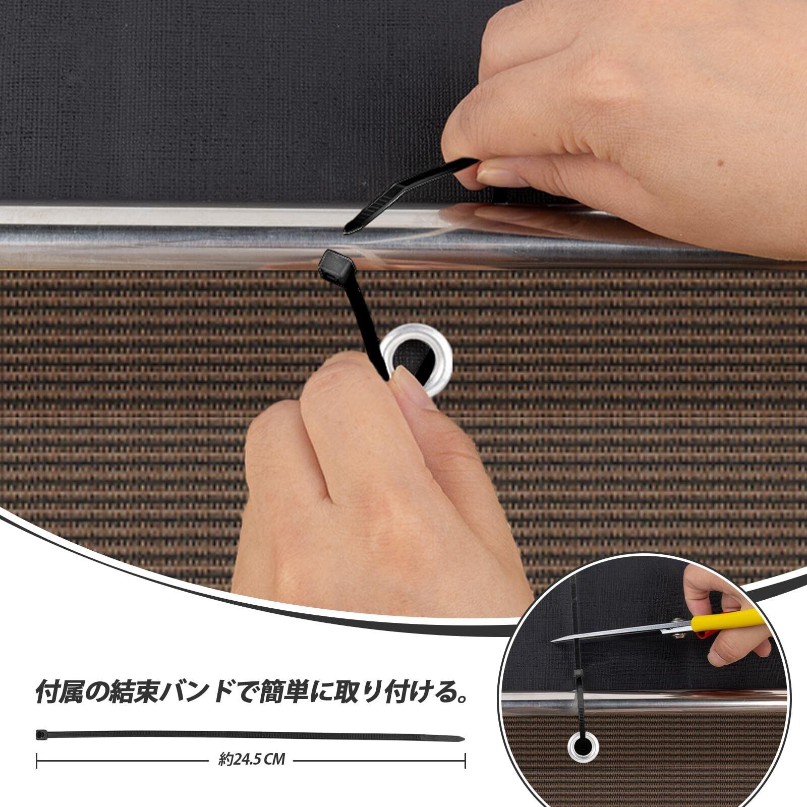 【素材詳細】185GSM高密度のポリエチレン(HDPE)素材で、耐候性がよくて、普通の布より長持ちです。また汚れた時はウェットティッシュやウェットのタオルだけで簡単に拭えます。収納もとても便利で、折り畳んでコンパクトに収納できます。またサイズが合わないともでも、HDPE素材なので、自由にカットしても、ほつれにならいないです。DIYシェードを作ることがOKです。