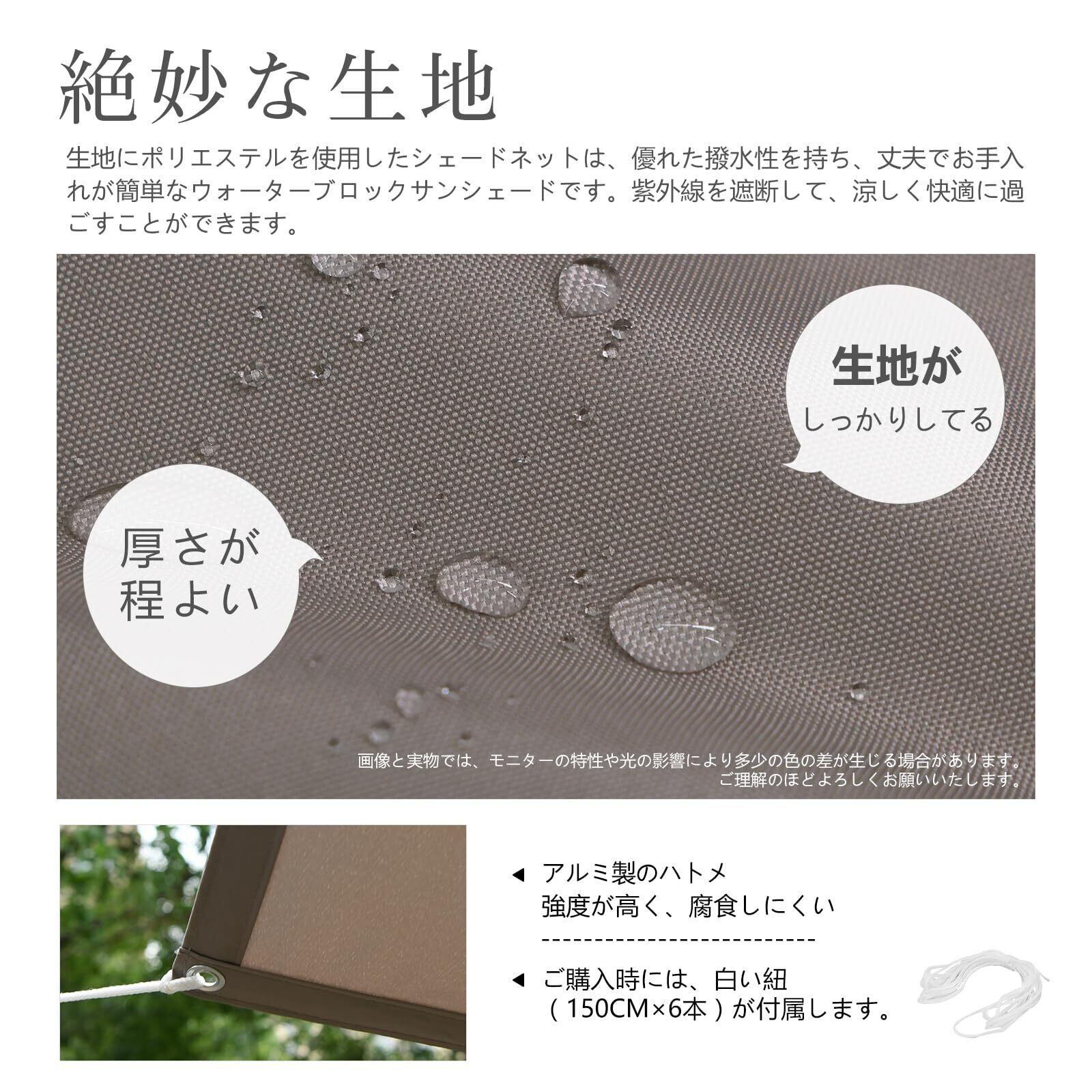 生地に300Dポリエステルを使用したシェードネットは、優れた撥水効果のシェードです、急な雨からも洗濯物などを守ってくれます。
