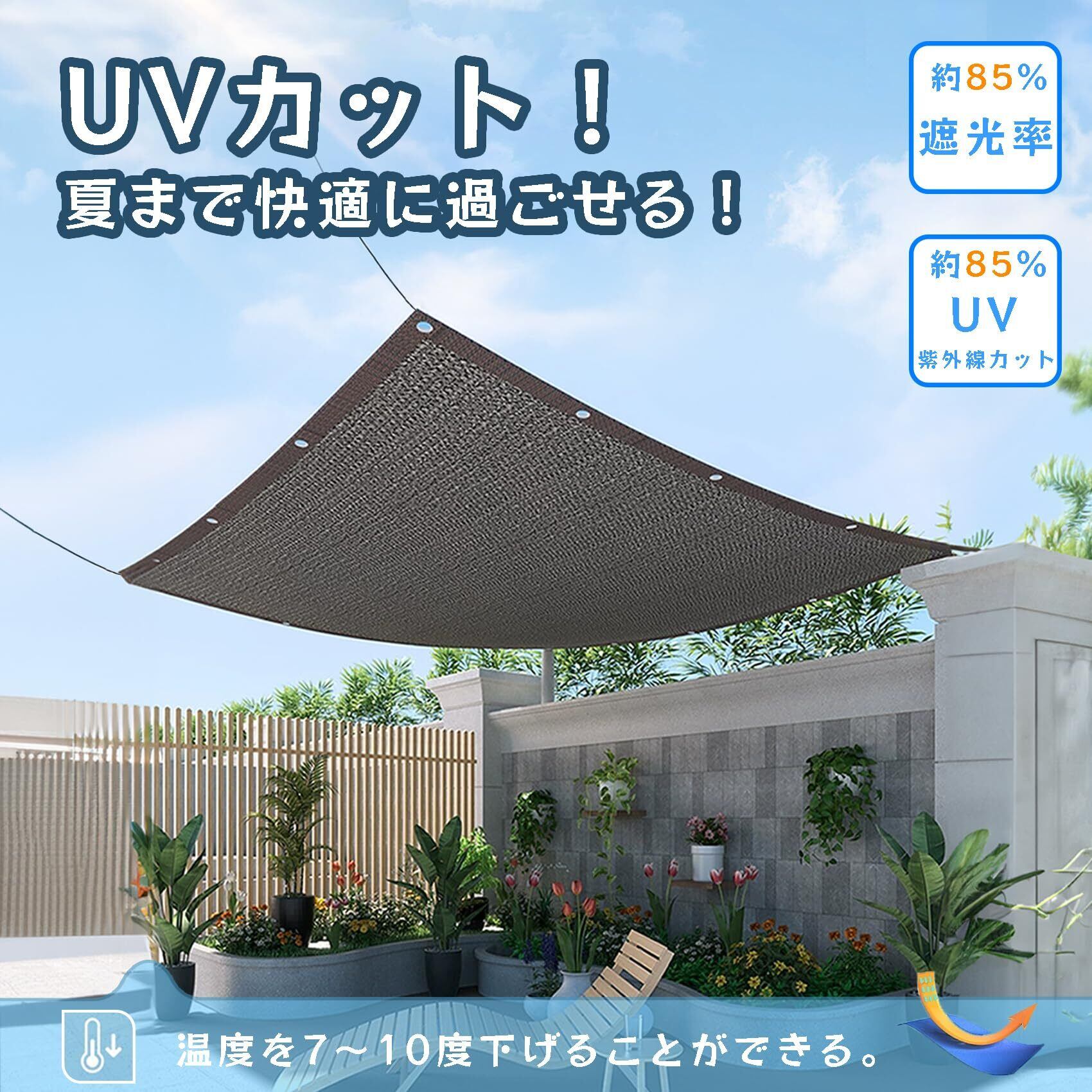 【uvカット!夏まで快適に過ごせる!】日よけシェード、目隠しシェードとして大人気の商品です。XGIUINIの日除け シェードは、UV加工された原料で織られており、紫外線をカットします!直射日光を遮り、紫外線を約80%-90%カットしてくれます。遮光率・約80%。スダレ(簾)やヨシズ(よしず・葦簀)の代わりとしてご利用頂けます。熱い夏を涼しく快適に過ごすことができます。