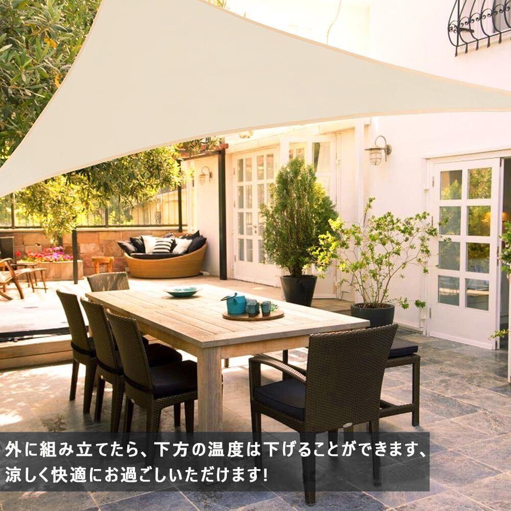 サンシェード 三角形 日よけ シェード 目隠し 日除け UVカット 紫外線 遮光 雨よけ 撥水加工 大きいサイズ 大型 防水 省エネ 節約 たてす よしず 洋風 タープ サンシェード おしゃれ 夏 庭 ガーデン ベランダ 窓 バルコニー アウトドア カフェ (200×200×200cm, オフホワイト)