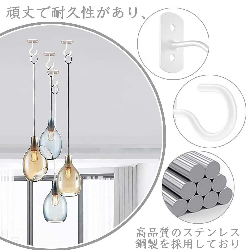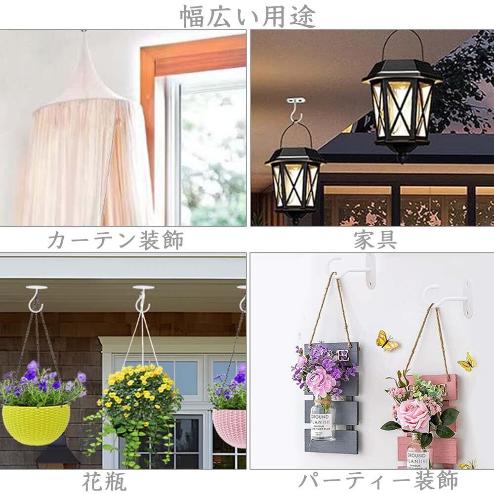 天井 フック 吊り下げ金具 ネジフック 2個セット 石膏ボード 壁掛け ピンフック 固定止め 鳥の餌箱 風鈴の装飾 照明器具 園芸 屋内 屋外 ホワイト