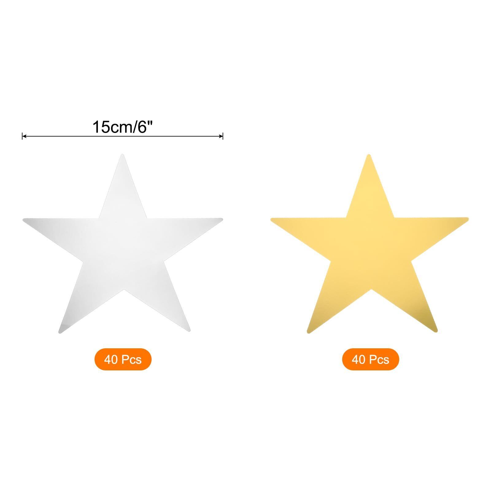 uxcell 80枚 スターカットアウト 金 シルバー 15cm 両面印刷 五つ星紙 ピカピカ カラフル 結婚式 誕生日 クリスマス お祝い パーティー用
