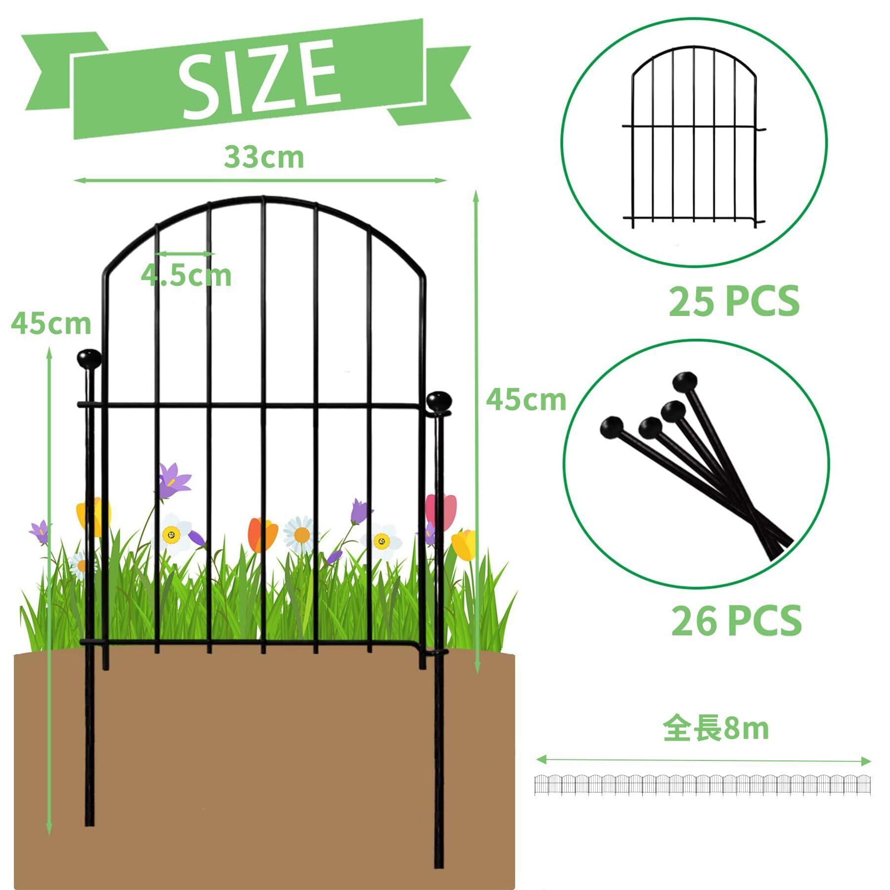 SONGSONG ガーデンフェンス 25枚 ガーデニングフェンス 植物保護 花壇/門扉/柵/ガーデン/菜園/DIY庭造り 鉄柵 防錆 犬 動物用バリアフェンス 簡単な取り付け 高さ0.43m×長さ0.32m 全長8m 説明書付き