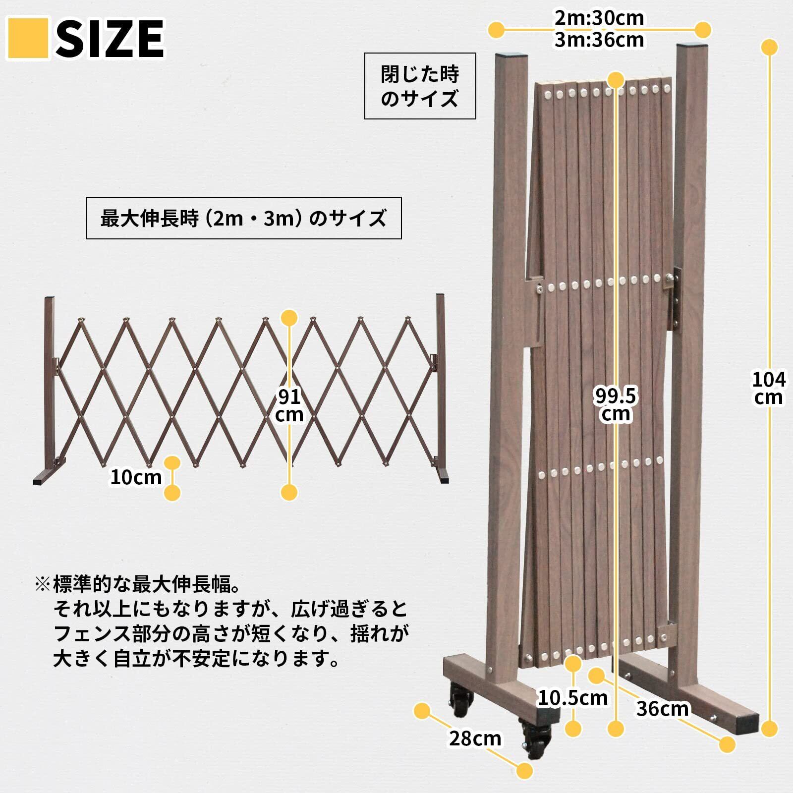 【限定セール】ガーデンガーデン アルミ 伸縮 ストレッチフェンス 幅2m 片側キャスター片側固定脚タイプ 木目調 アコーディオン 門扉 ゲート ALSF-1CAS-2M
