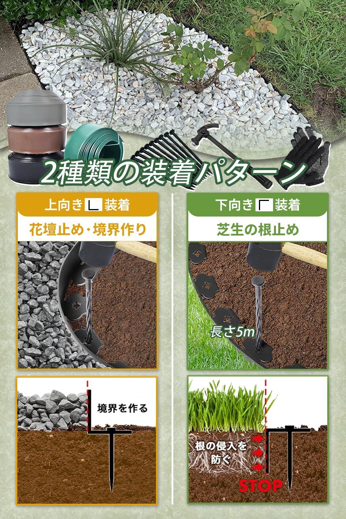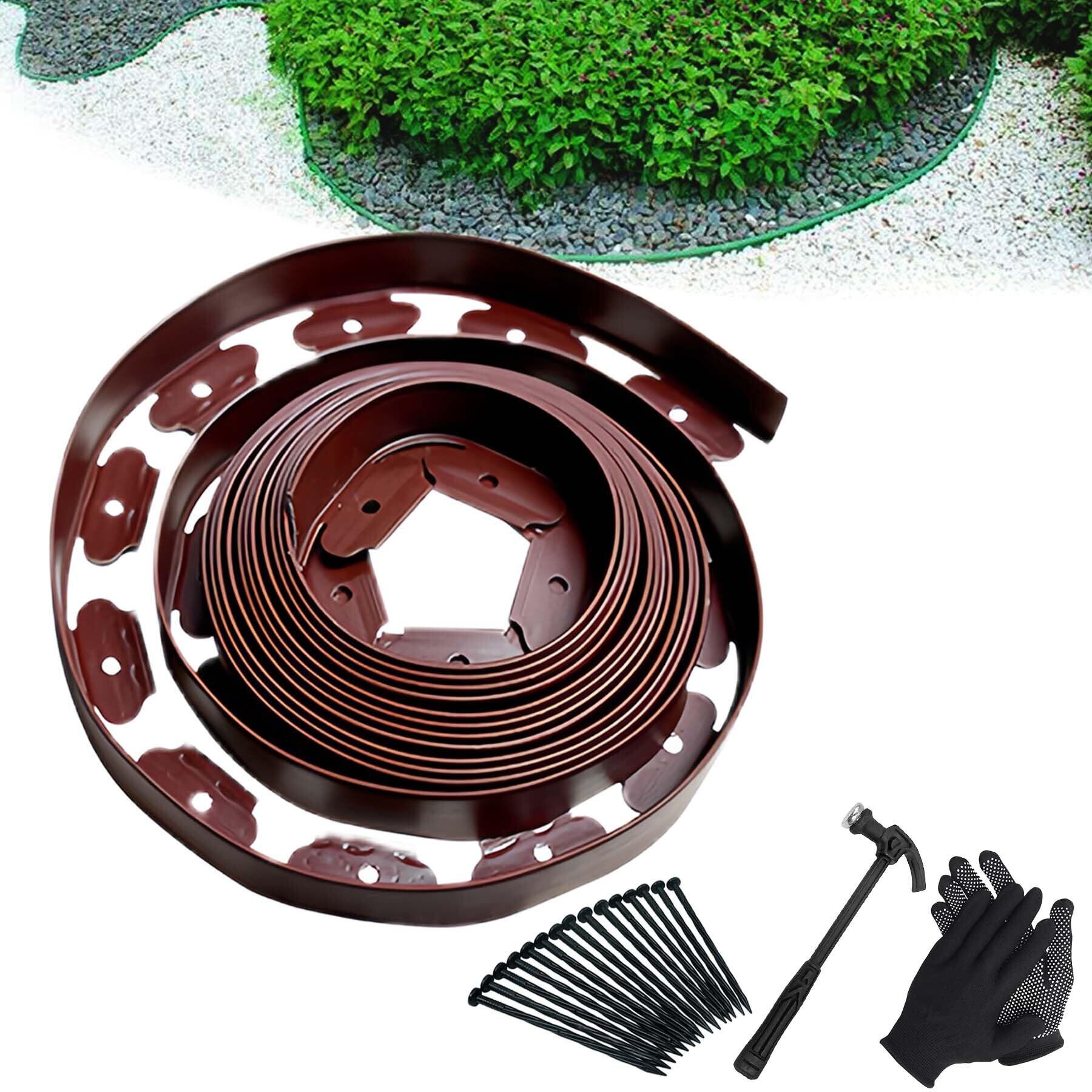 YUNHE ガーデンエッジ フェンス 土留め 園芸シート 土留めフェンスシート 花壇 芝生 根止め ガーデニング DIY 裁断可能 土と芝の根 境界線の分割 庭のデザイン 15本の固定釘 ハンマー 手袋付属 取り付けが簡単 (茶色, 高さ5cm*長さ5m)