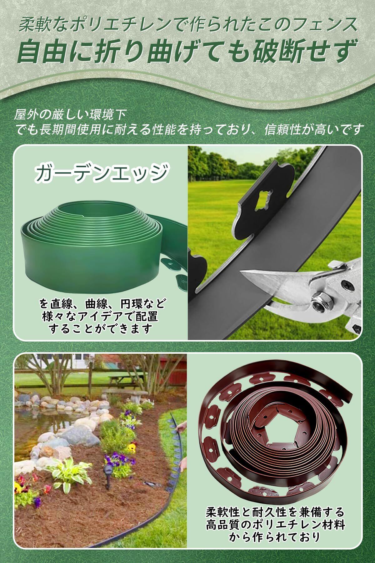 【庭 DIY に最適な自由度】柔軟性に優れ、直線・カーブ・円環など多様な配置が可能で複雑な庭の形にも対応。芝生と花壇の境目、低木の花壇や庭のデザインに景観に馴染み、自分のアイデアでカスタマイズして魅力的に装飾できます。