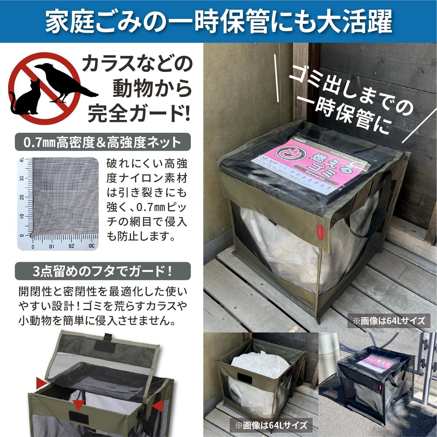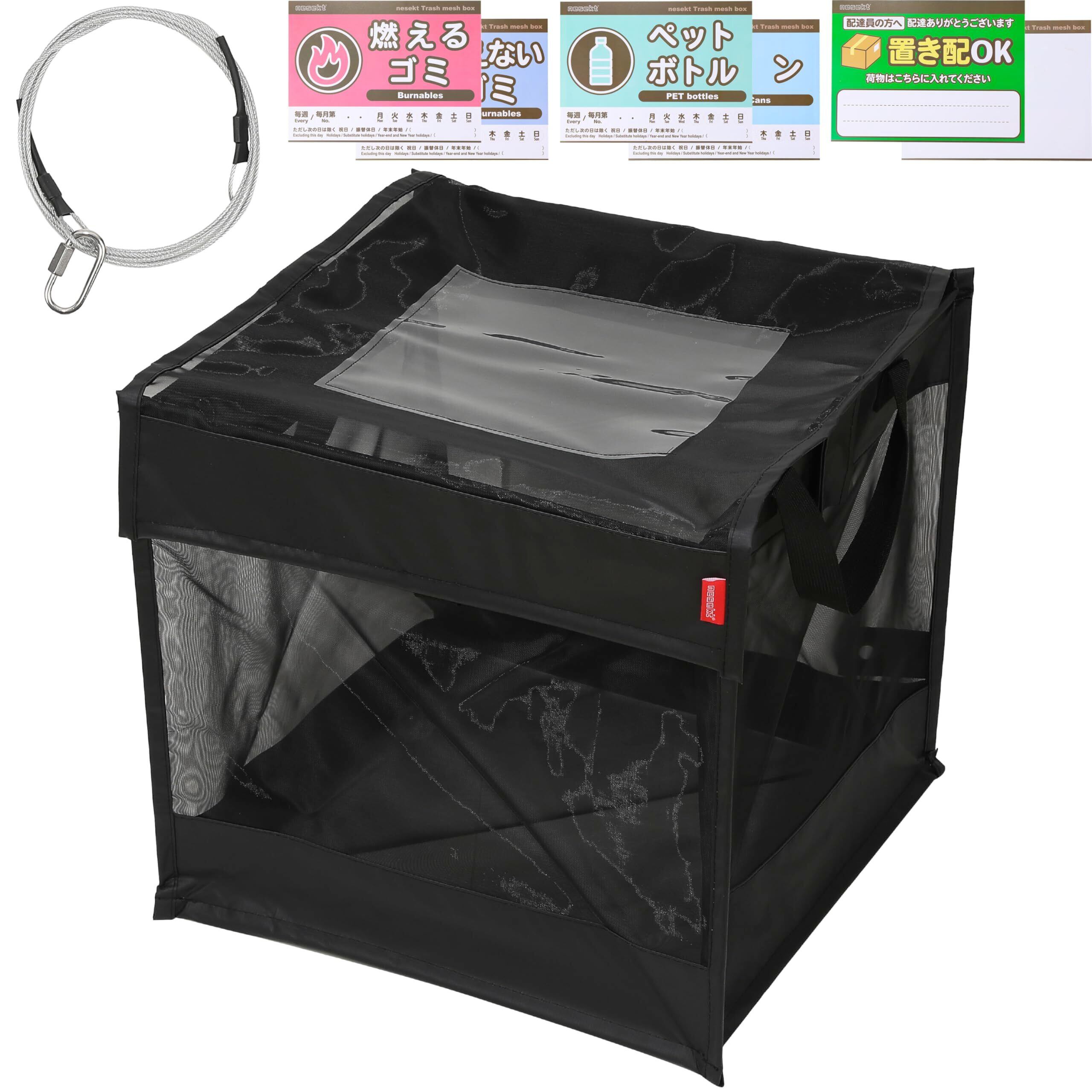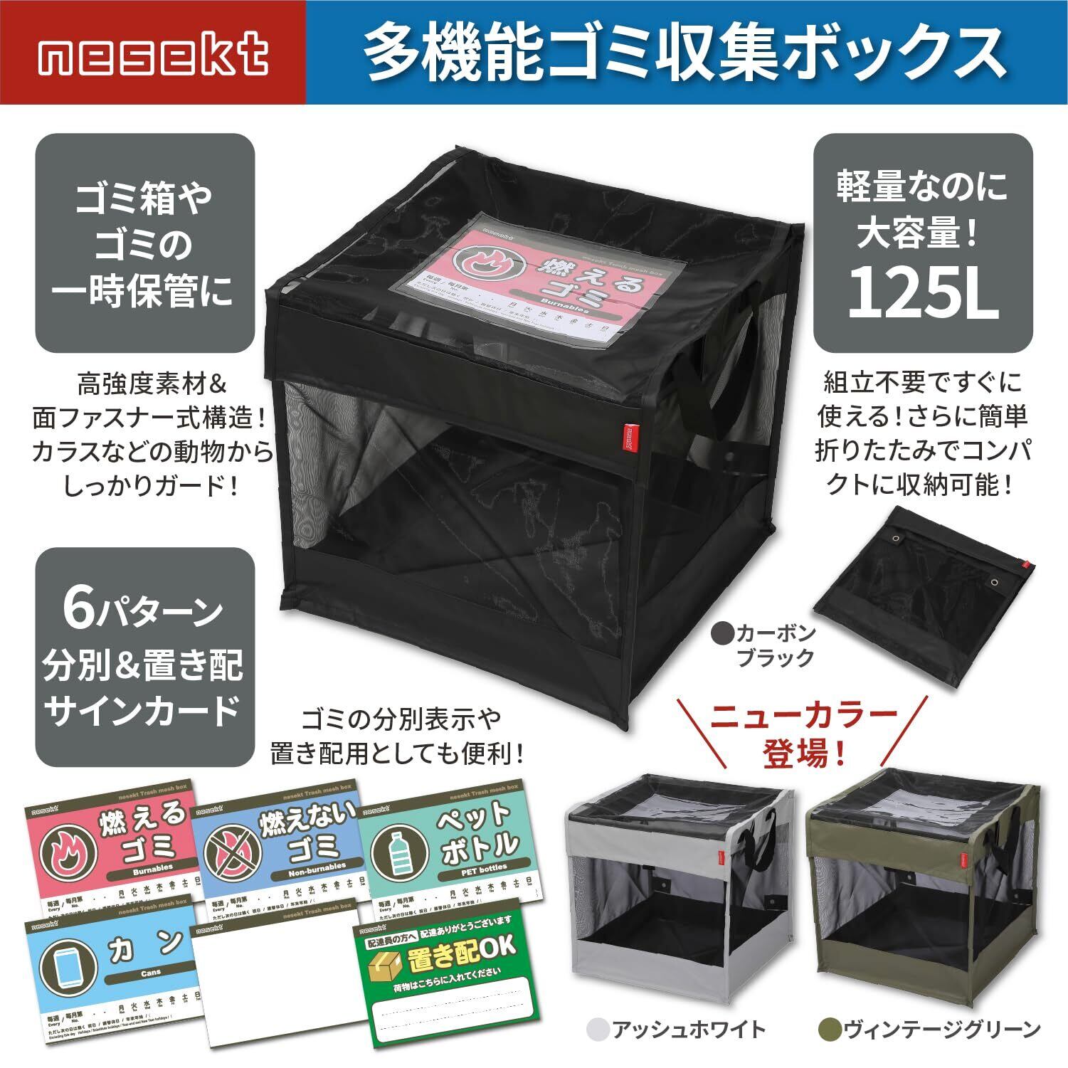 [ネセクト] 折りたたみゴミ収集ボックス ワイヤー付 置き配ボックス ゴミネット カラスよけ 収集庫 超軽量 戸別回収 [日本国内企画品] (カーボンブラック, 125L)