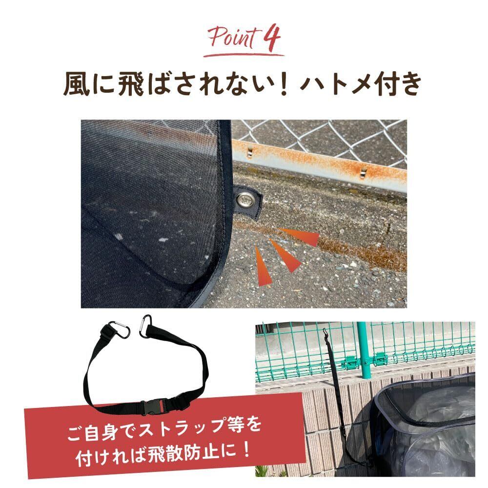 ポイント1、網目の細かい高強度ネットでしっかり防御 ファスナー開封なので隙間なし! 小動物の侵入も防止 網目が大きいネットはくちばしで突かれゴミが荒らされる恐れがあります。