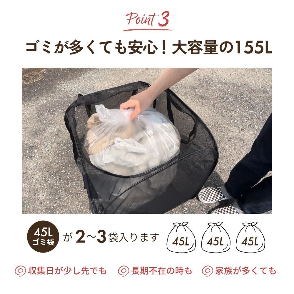 高強度 カラス除けゴミ箱 大容量155L 45Lのゴミ袋2~3袋分 迷惑なカラス被害からしっかり守ります!