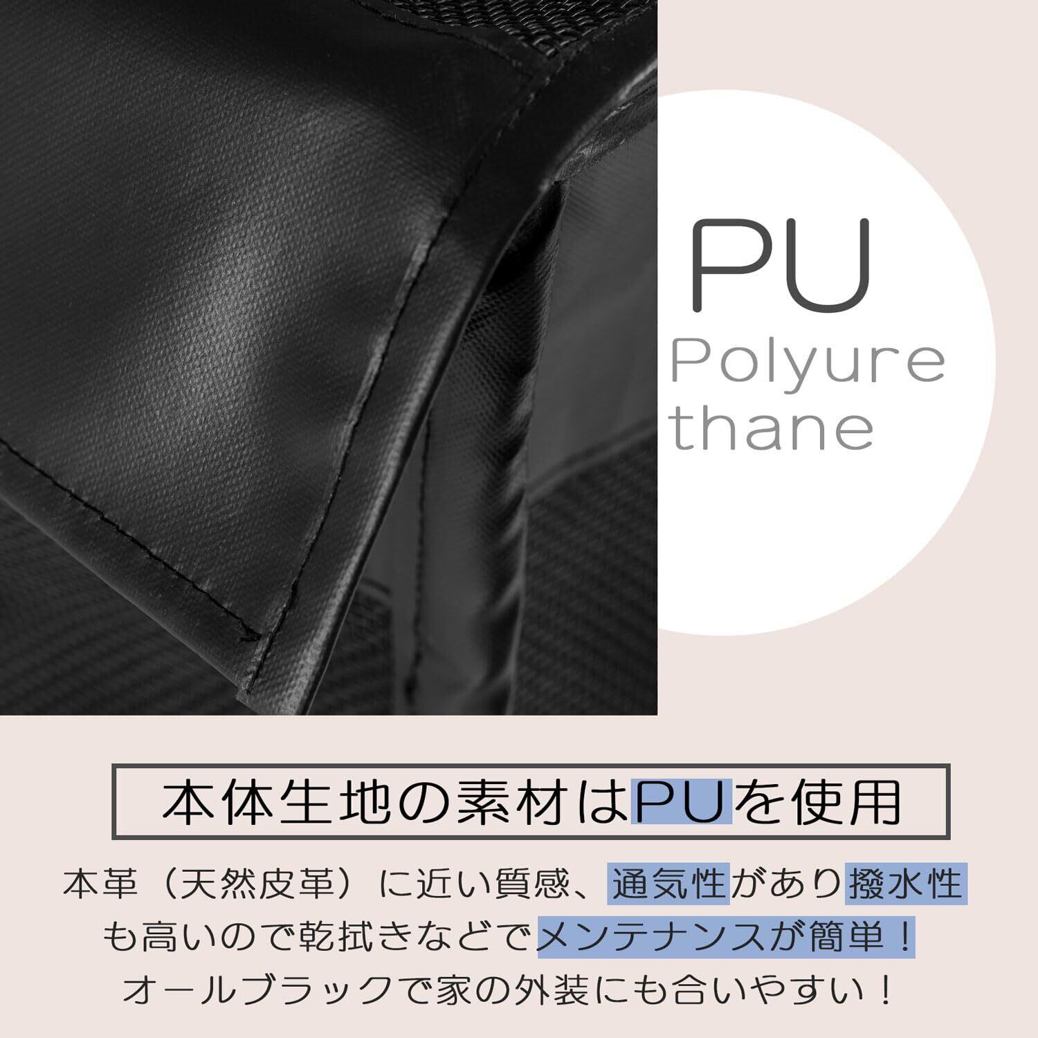 【使用素材は強度抜群】 ゴミ出しは毎週、種類によっては毎日のように外に出して使用するゴミネットボックスになります。 長くご使用いただく為にも、シート部分にはPUレザーを使用。 PUレザーは伸縮性と撥水性に優れており、何度折り畳みしても畳みシワがつきにくく、雨の日でも 安心して継続的にご使用いただけます。 また、網に使用しているPVC素材は擦れに強く、傷がつきにく商品を長く愛用いただけます。