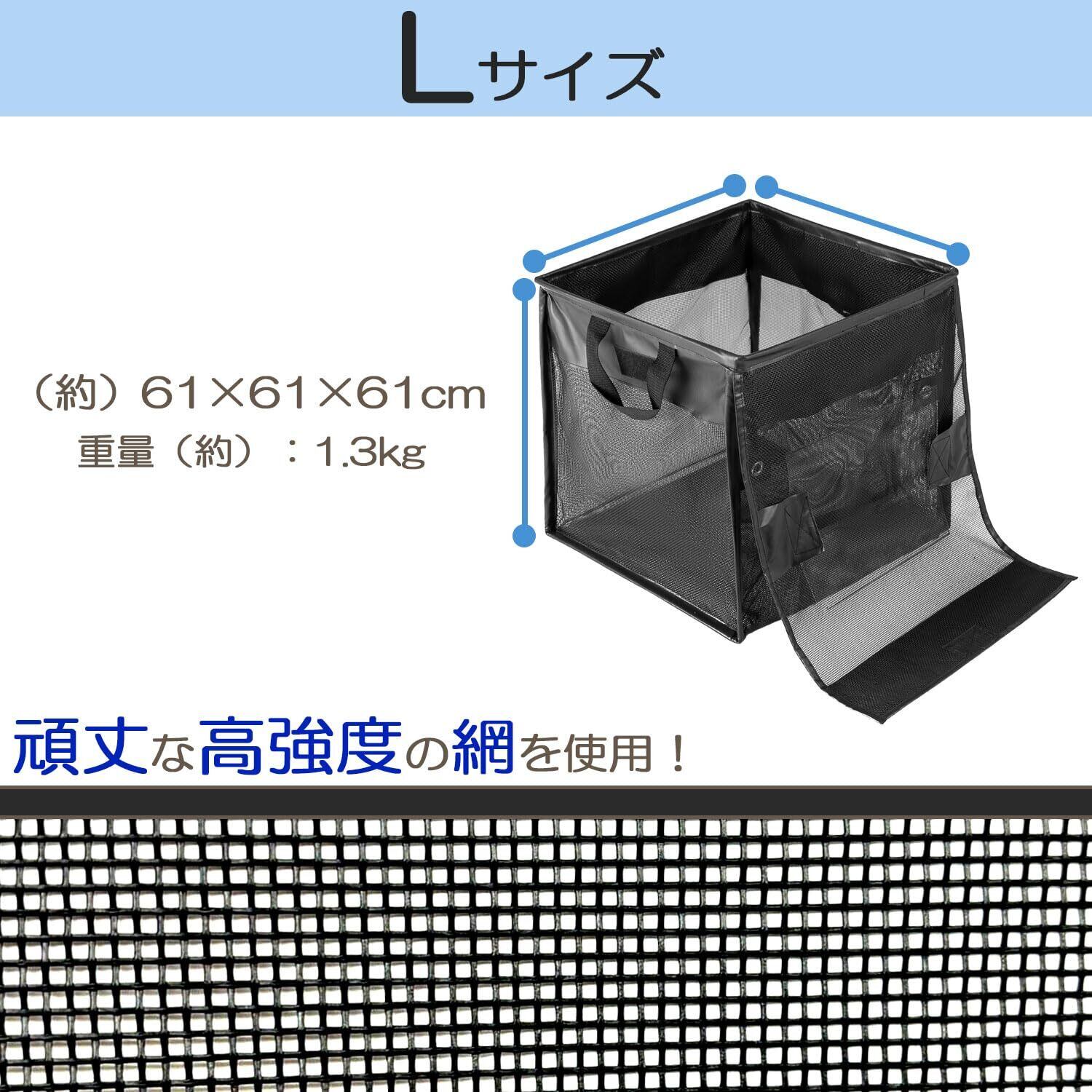 RK 【網線直径約0.5mmもの太さ 高強度PVC素材】216L大容量 カラス除け ゴミボックス ゴミネット カラス除けボックス 45リットルのゴミ袋3個分収納可能 折り畳み式 耐久性に優れる 高強度PVCネット&シートPUレザー使用 固定用フック付き 日本メーカー企画品 (Lサイズ 216L)