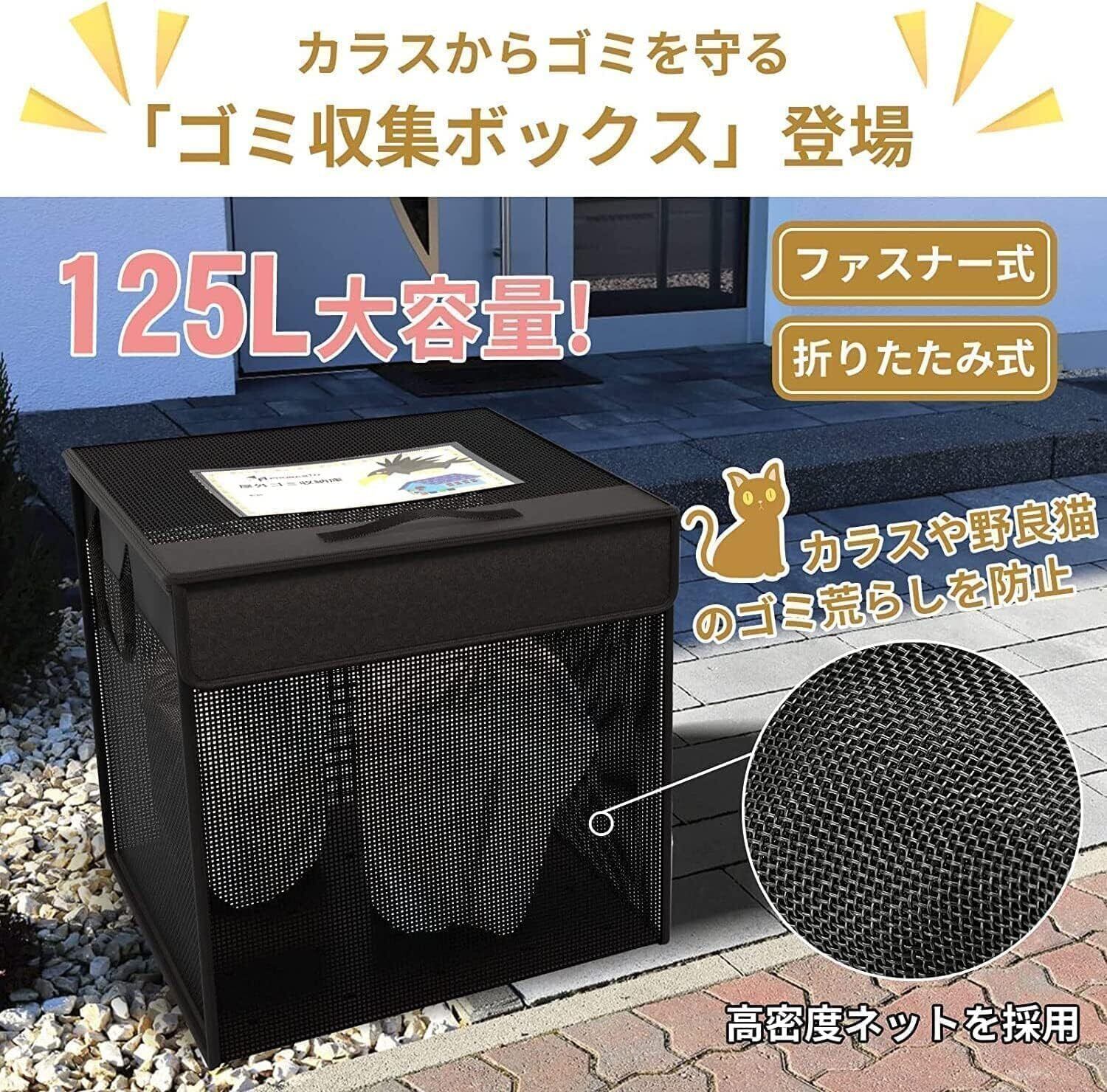 カラスよけネットゴミネット 屋外ゴミ収納庫 ファスナー付き マジックテープ付き 大容量 折りたたみ式 ゴミ収集ボックス 野良猫よけ ボックス (125L)
