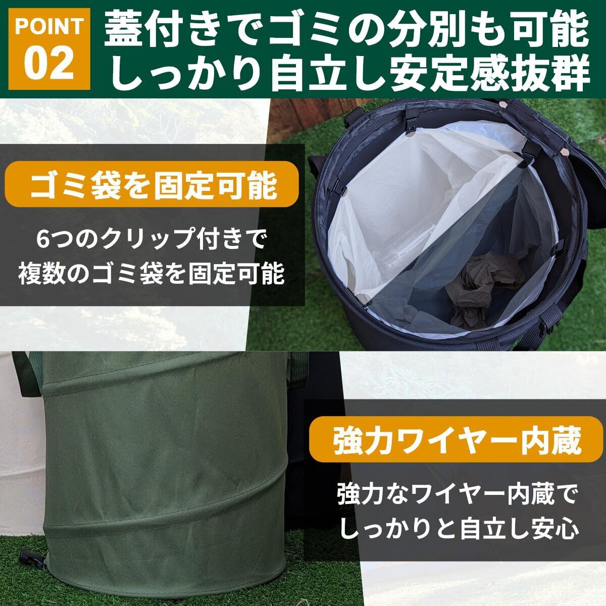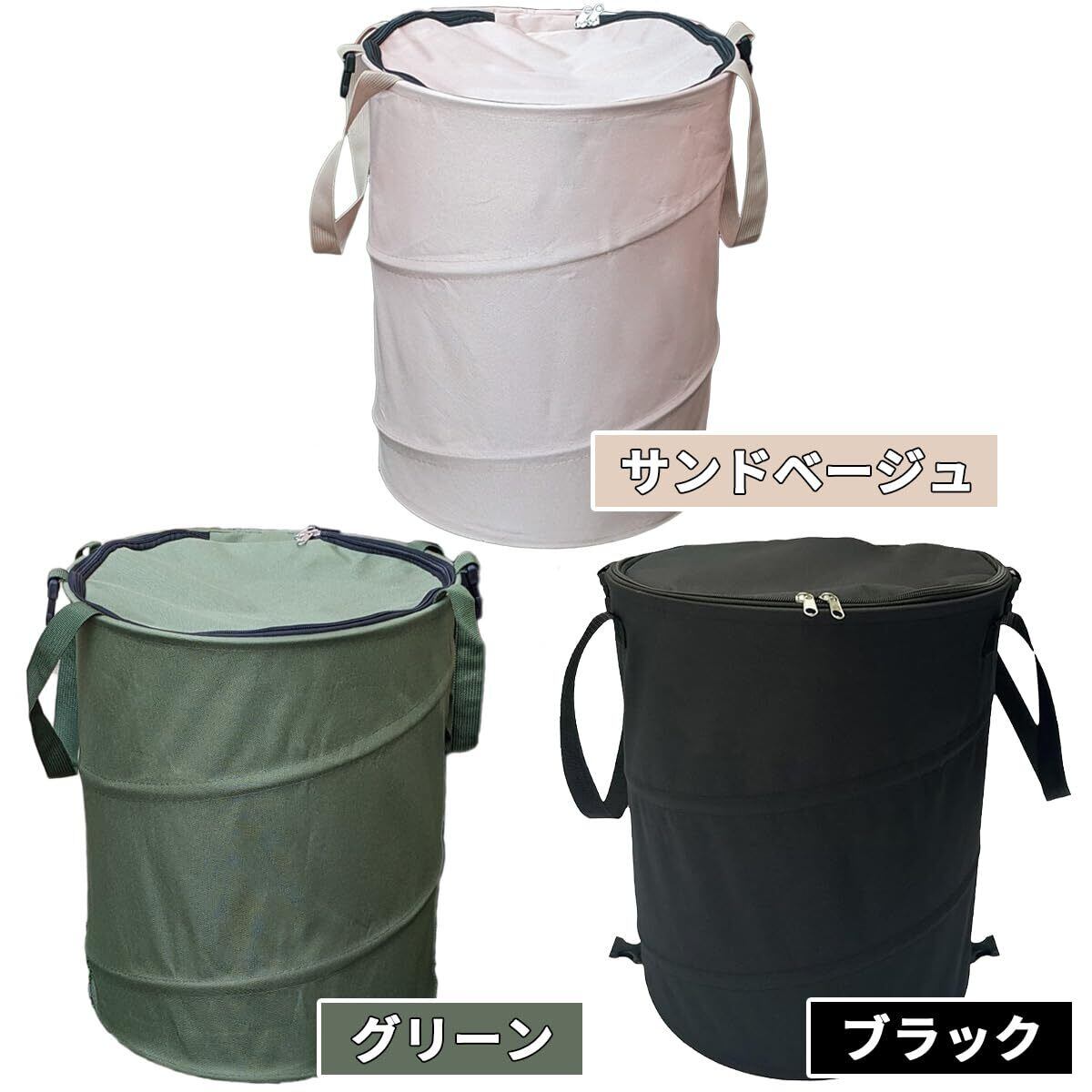 【ポップアップ式で簡単展開】バックルを外すだけで自動的に展開し、瞬時に使用可能。簡単に折りたたんで収納でき、ハンドル付きで持ち運びしやすい。ダブルファスナー式の蓋で、臭い漏れや動物や虫にゴミを荒らされるのを防止し、中身がこぼれる心配もありません。