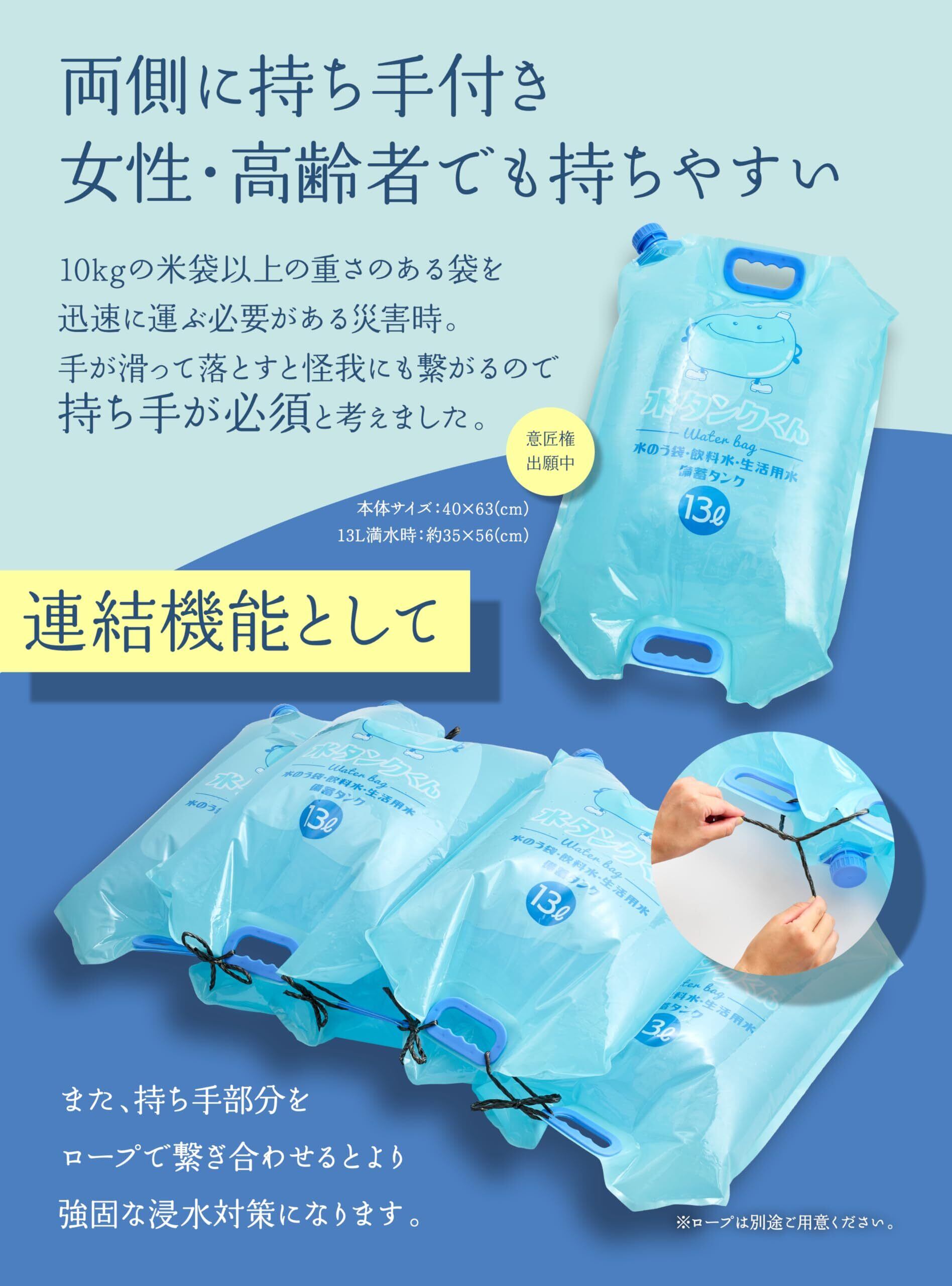 水のう袋 13L 水タンク 水害対策 ゲリラ豪雨 浸水対策 防災グッズ 連結可能 貯水タンク 非常用 折りたたみ 給水バッグ(5枚入り)