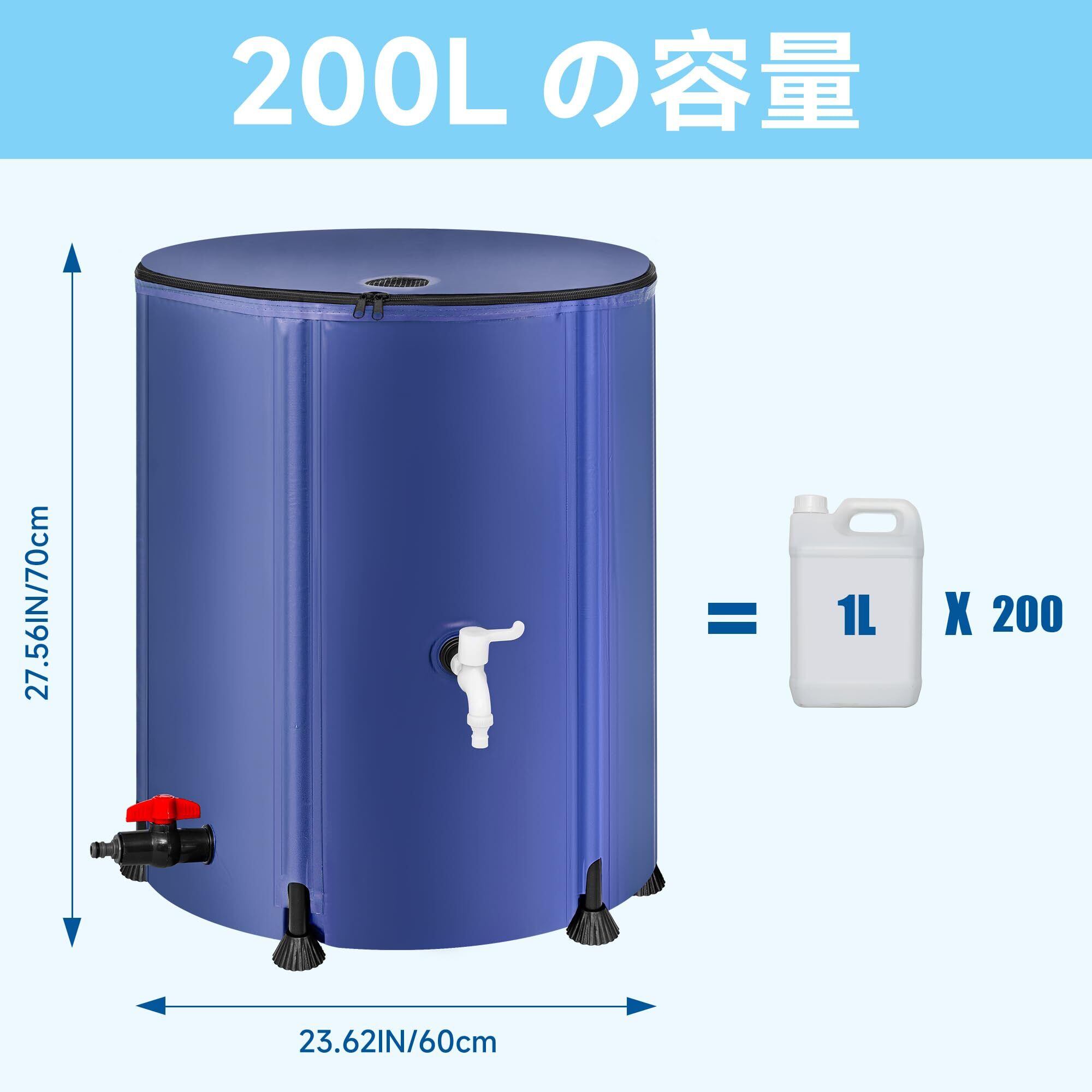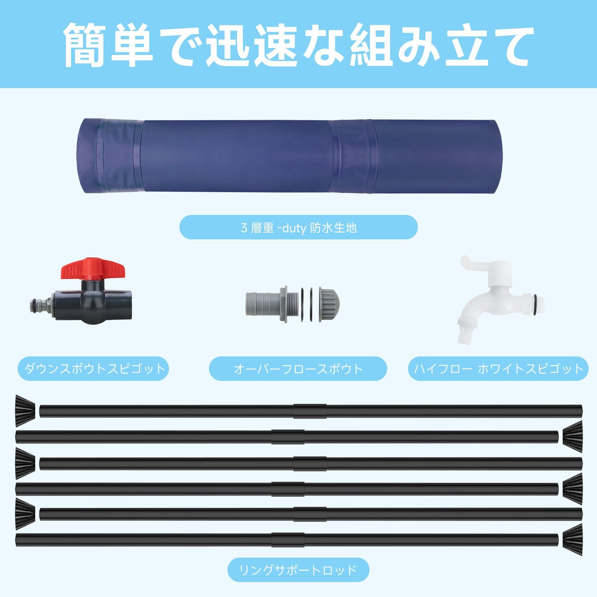 【耐久性と強度】の雨水タンクは、耐久性のある3層PVC素材で作られており、最も厳しい環境に耐える強さを持って設計されています。さらに、追加の安定性のために堅い棒が特徴であり、ぐらつきや傾きの問題を効果的に解消します。