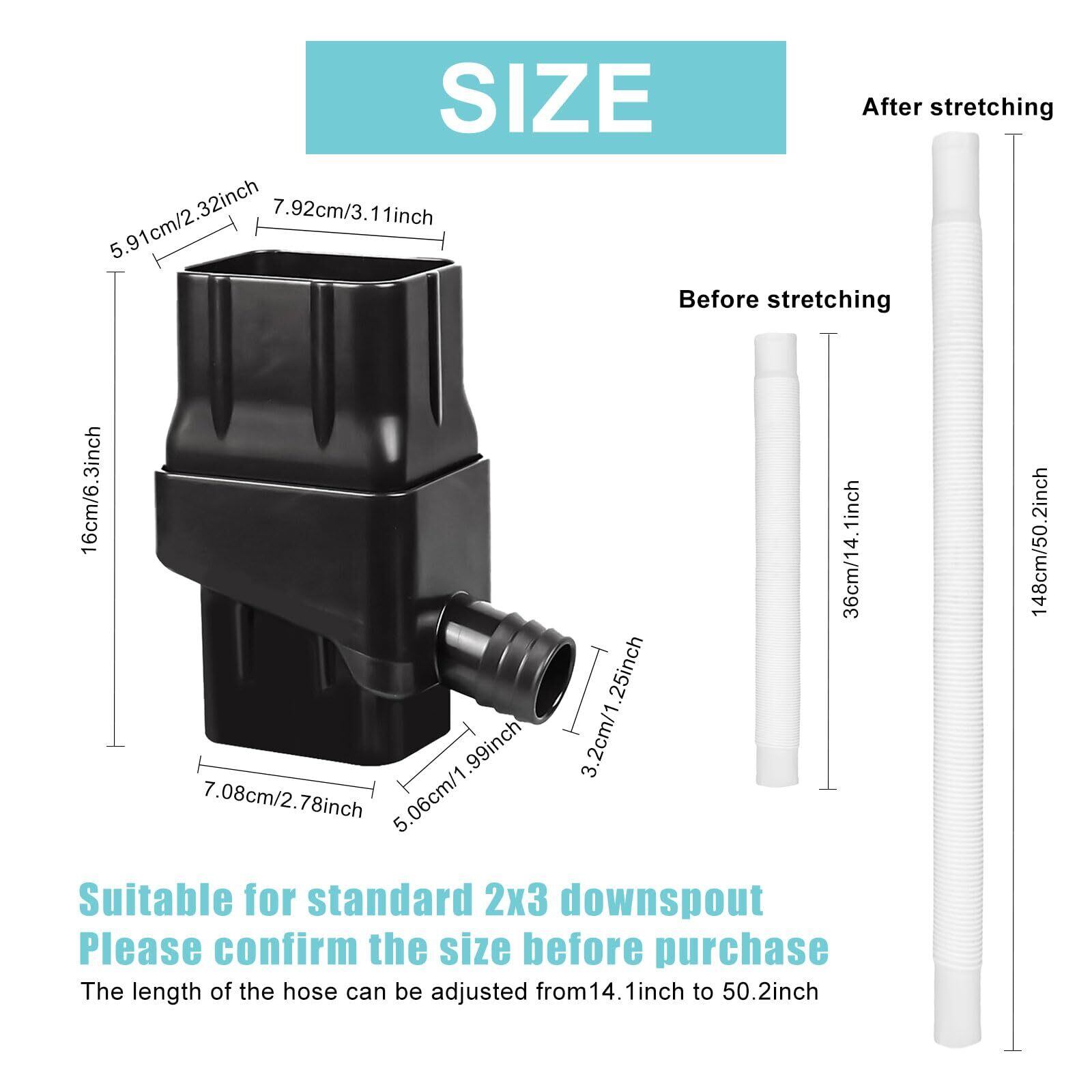 【取り付け簡単】標準的な2" x 3 "の住宅用樋に合うように設計されており、この雨水コレクターは簡単に取り付けることができます。 内側の溝は深く設計されており、ネジなしで安定したサポートを提供します。
