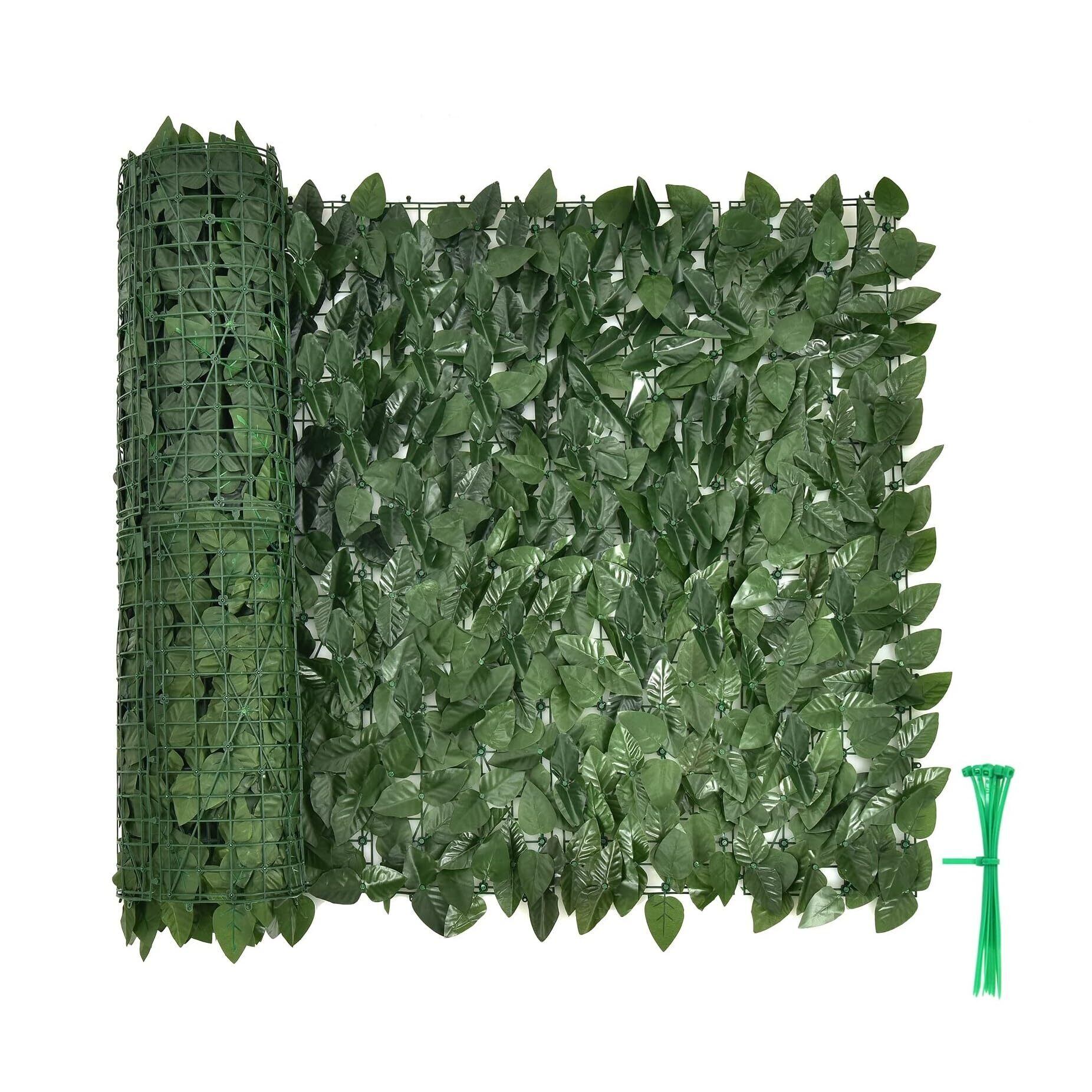 グリーンフェンス リーフラティス 100x300cm24枚パーツ組み合わせ 緑のカーテン グリーンカーテン フォレストグリーン 日よけシェード 目隠しフェイクグリーン 簡単設置