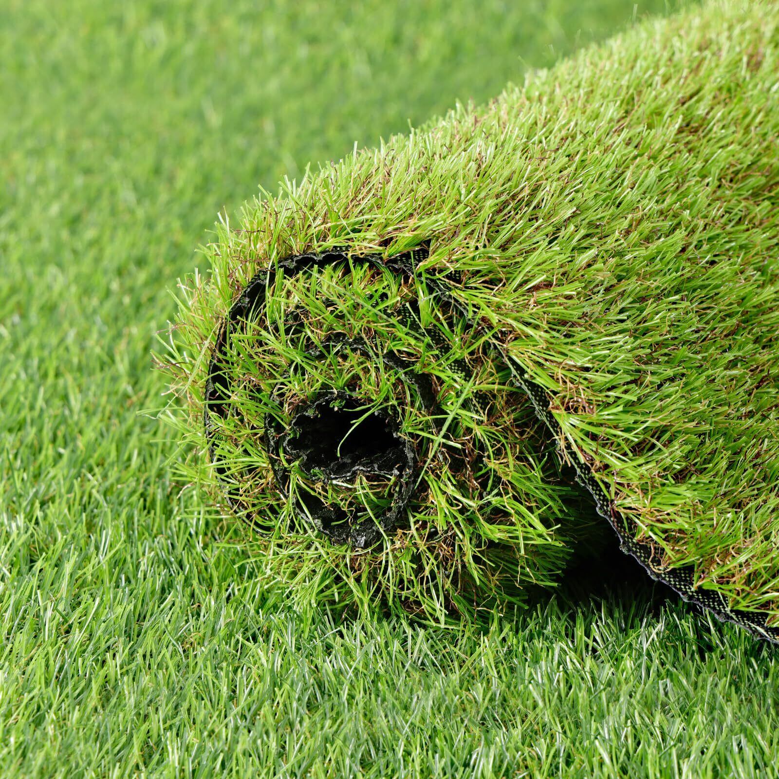 【防草シート付きタイプ】人工芝と防草シートが一体になり、手間をかけないで簡単に設置することができる。メンテナンス不要、一回敷設すると長い時間に楽しめる!