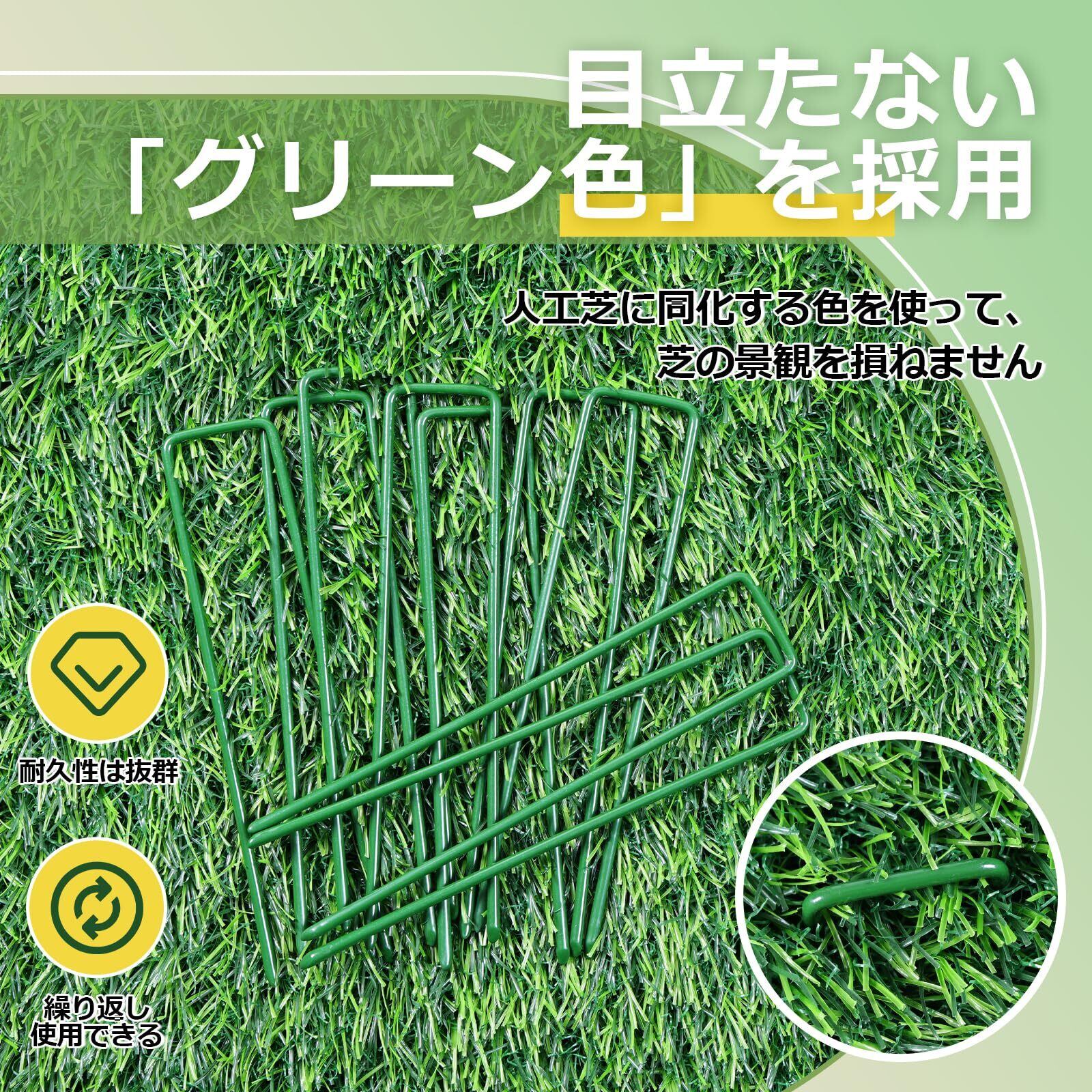 【幅広い用途】U字ピンは人工芝をしっかり固定し、遊んでいる最中にズレたり、風で飛ばされないようにするために必要です。防草シート、人工芝、ザバーン、不織布、マルチ、灌水ホース、ビニールマルチ、農業用防虫ネット、各種シートとマット等の園芸用品を地面にしっかり固定させるピンです。 ガーデニング・農業・庭用だけでなく、キャンプの時テントの固定ピンとしておすすめです 。