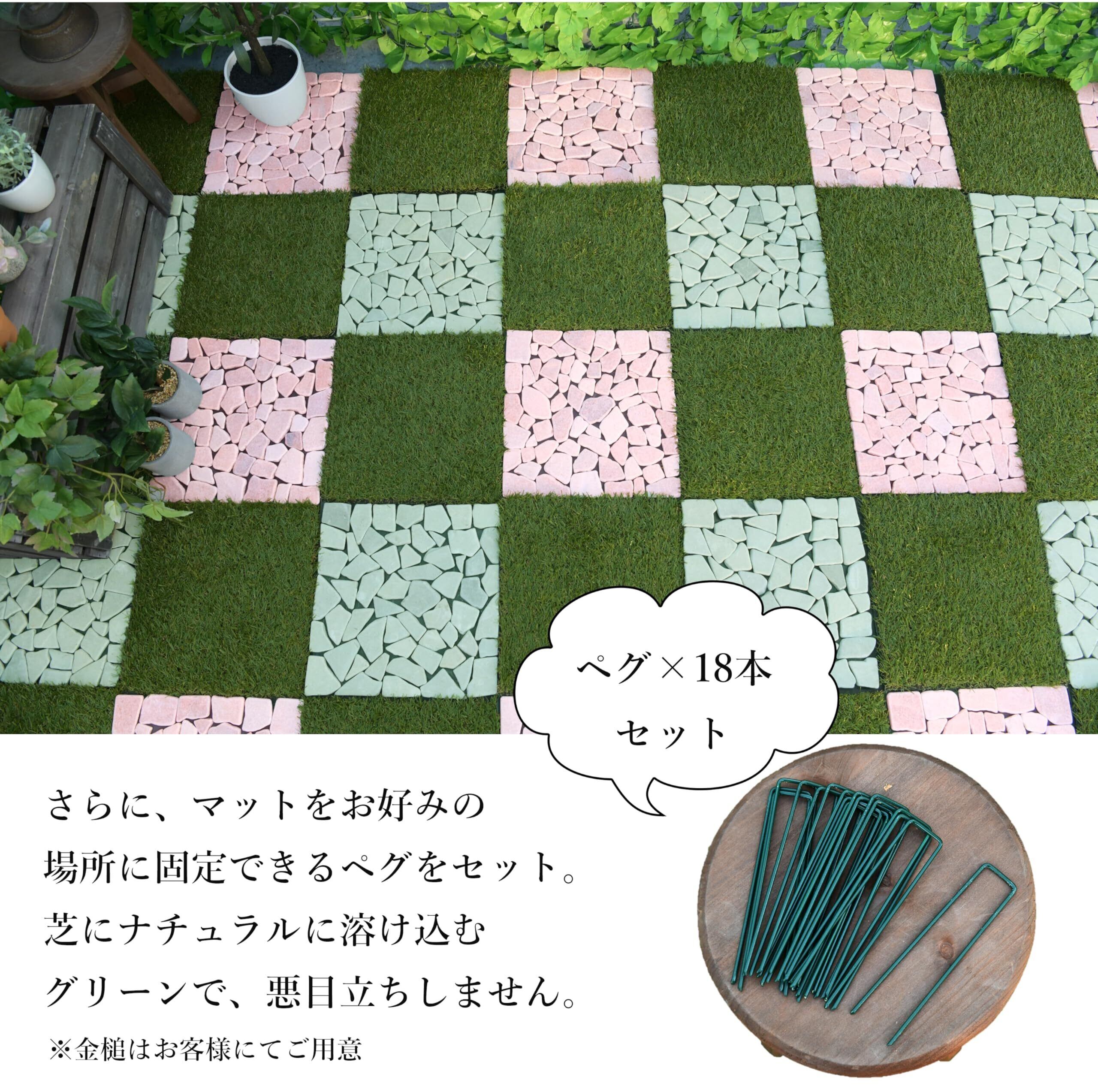 リビングアウト(Living Out) 人工芝マット 30×30cm 9枚セット 芝生 タイル ペグ付き リアル 防草シート 庭石 DIY 洋風 防草マット 雑草対策 ガーデン 敷くだけ 置くだけ