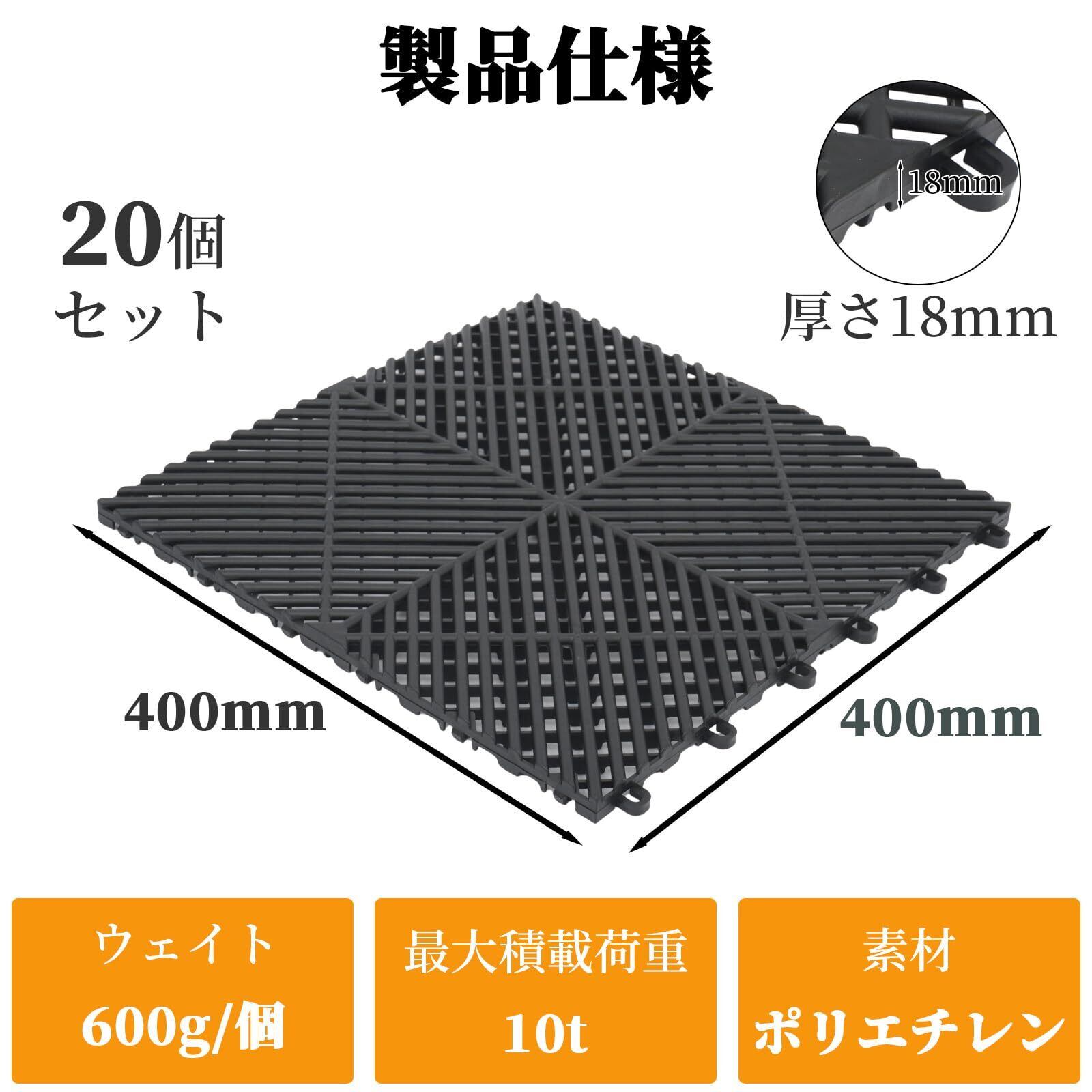 ガレージタイル ガレージマット 40cm×40cm厚さ1.8cm 20枚セット 連結可能 簡単施工 耐荷重10t 高通気性 屋外屋内 車 バイク 車庫 ショールーム 駐車場 (ブラック)